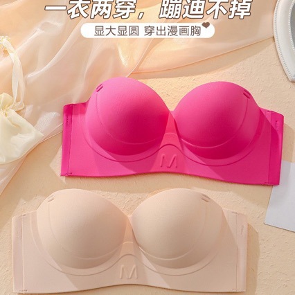 小さな胸の女性向けのストラップレスの滑り止めシームレス下着、プッシュアップ、カップなし、目に見えないチューブトップ、快適で通気性のあるブラジャー