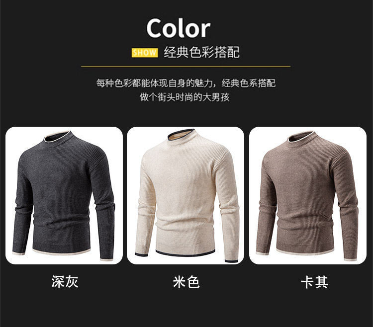 クロスボーダー秋冬新作メンズニット純色タートルネックセーターカジュアルコートメンズプルオーバー大きいサイズニット