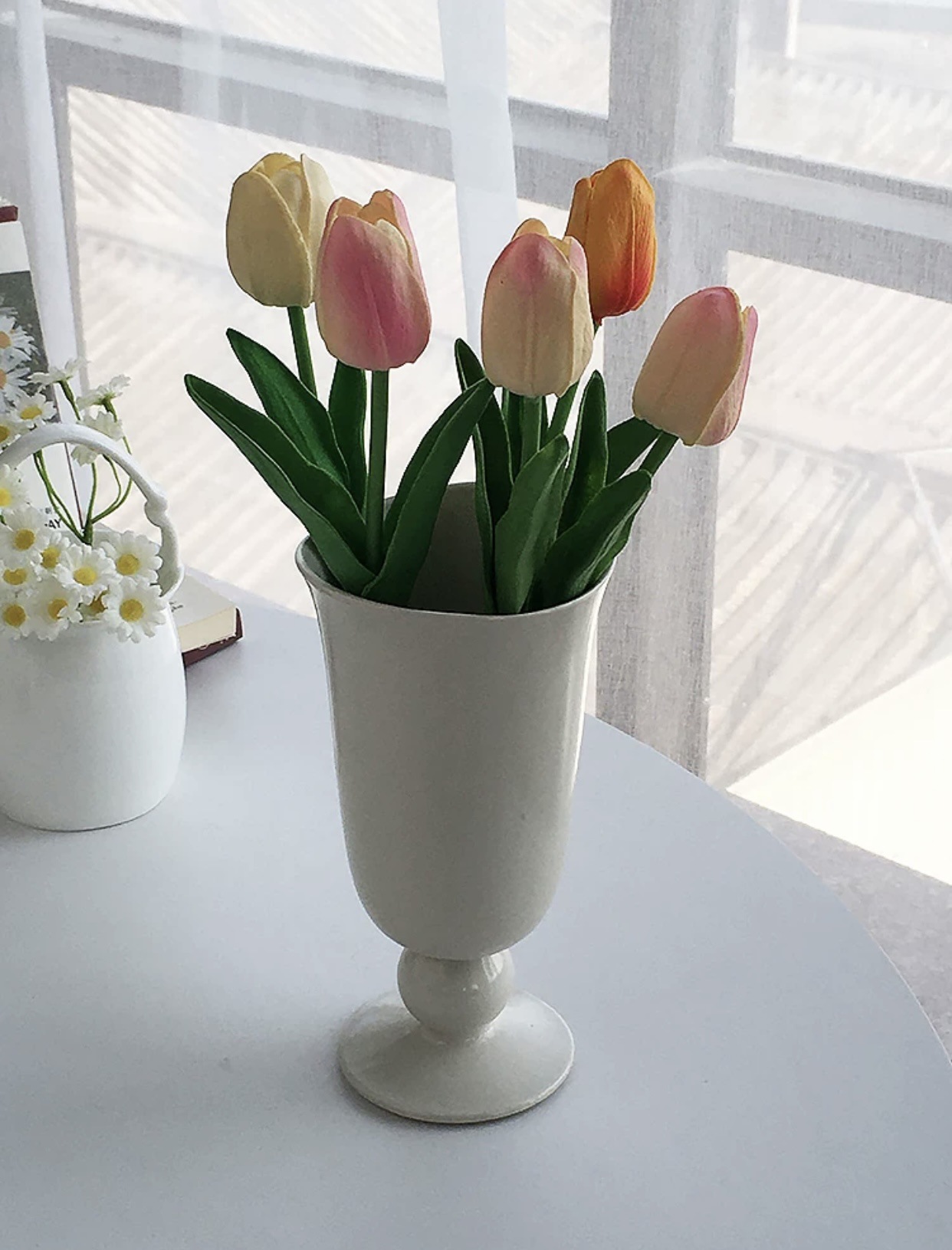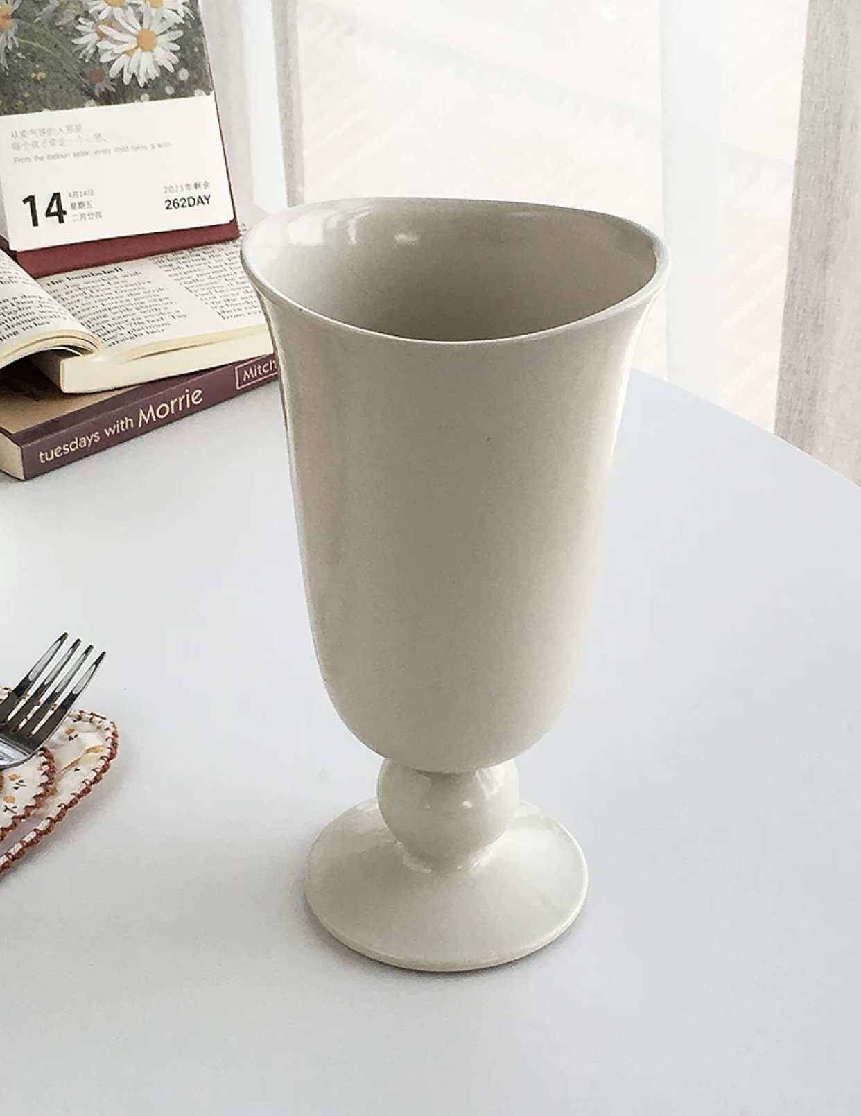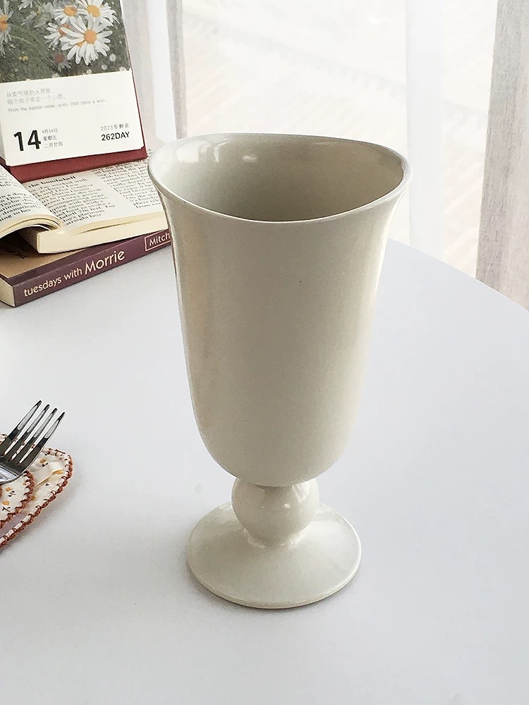 輸出高足杯生け花花瓶乳白色陶磁器花器レトロクリーム色高級感客間フレンチ置物