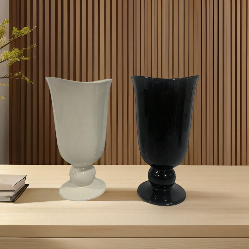 新品花器法式复古陶瓷花瓶高脚花瓶陶瓷杯宴会创意咖啡花器玄关