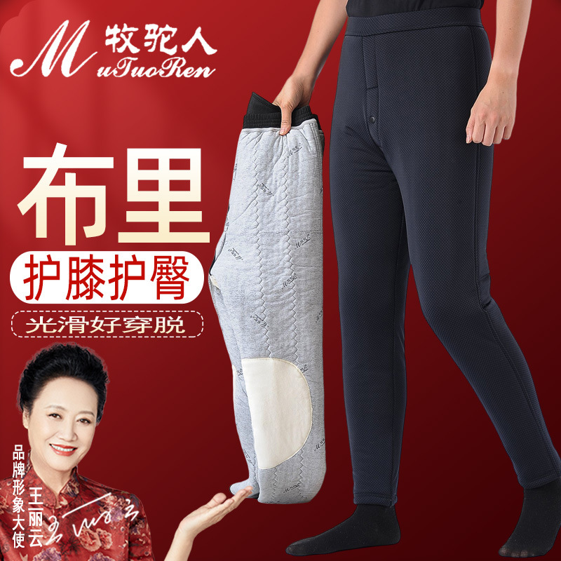 ラクダの冬の女性のキャメルケースの中で、高齢者は3層の厚手の高腰のお母さんを着て、保温ズボンを打ちます。