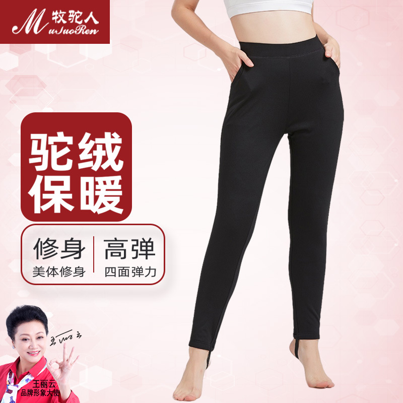 2023年冬内モンゴルのラクダの二重の厚いベルベットのズボンの女性の保温ズボンの男女のウールのズボン