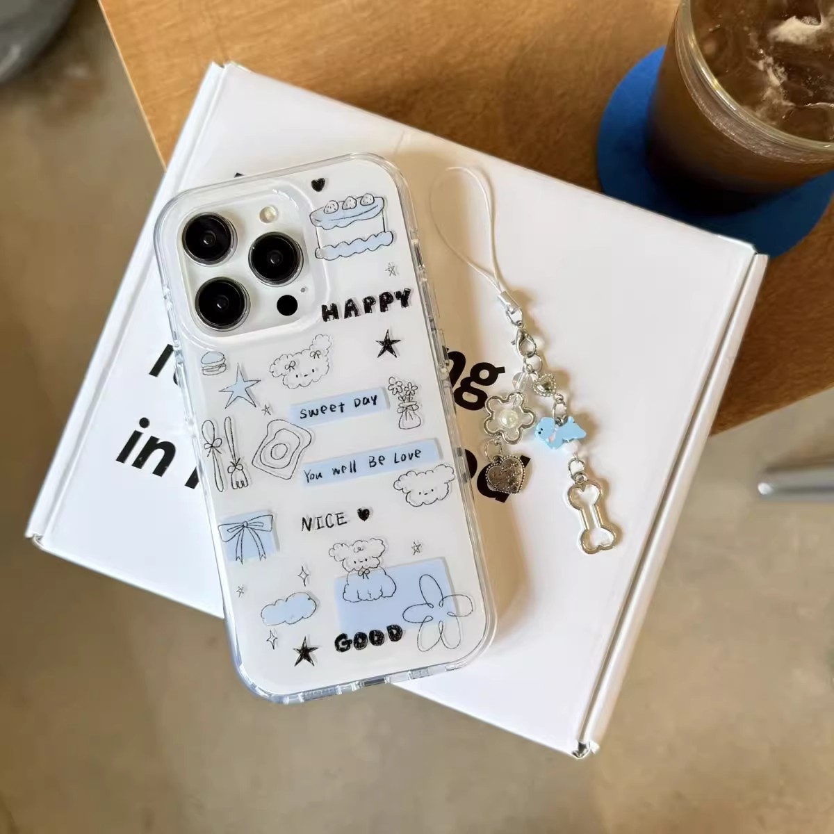 クリエイティブなラインケーキカトラリー子犬英語 iPhone17promax対応 Apple15携帯電話ケース14新モデル