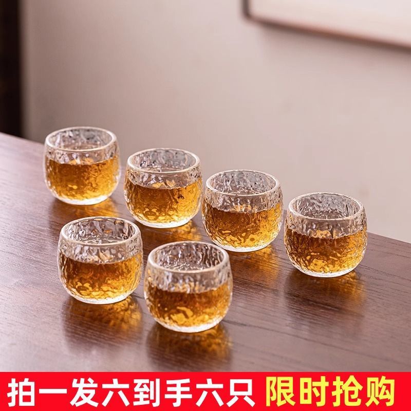 玻璃透明锤纹茶杯耐热扳指杯家用功夫茶具单杯水杯个性化主人杯
