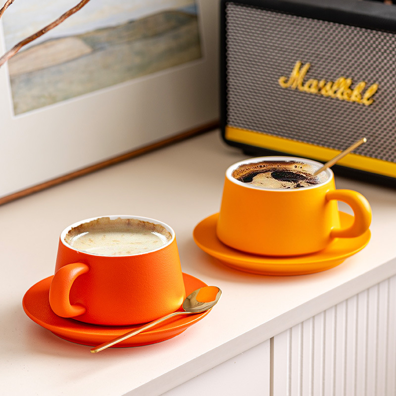 陶磁器の高級感がとてもきれいなコーヒーカップには、スプーン付きの贅沢なカップセットがあります。