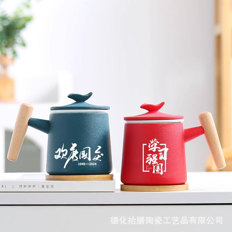 赤い文化ギフト陶磁器カップ茶水分離お土産マグカップフィルター付きオフィスカップ