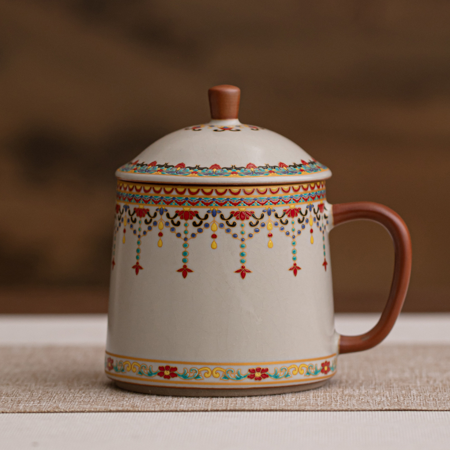 冬未敦煌陶瓷马克杯带盖大容量茶杯复古咖啡杯办公室水杯茶水杯