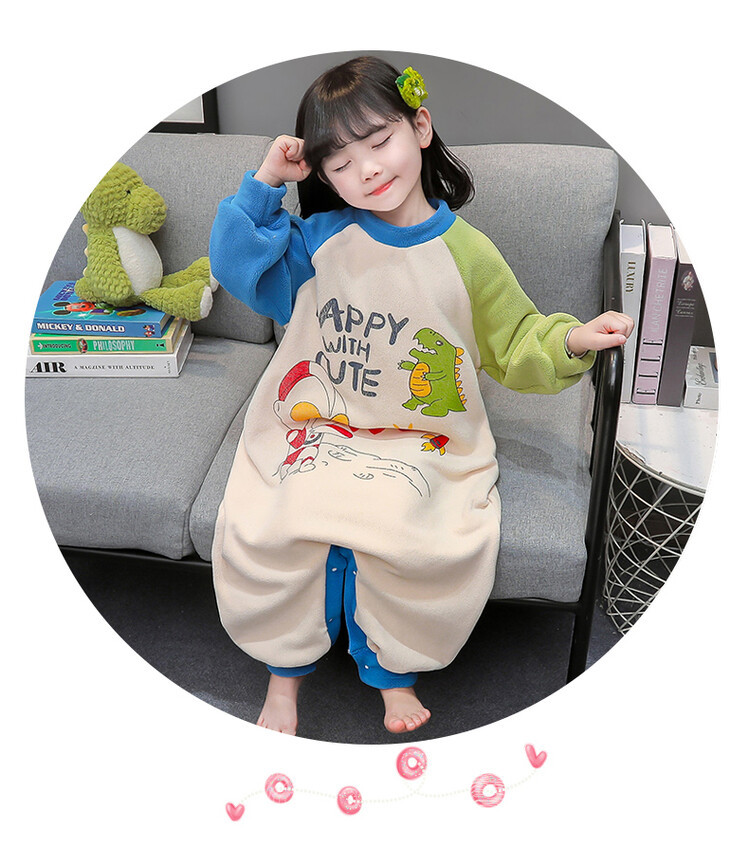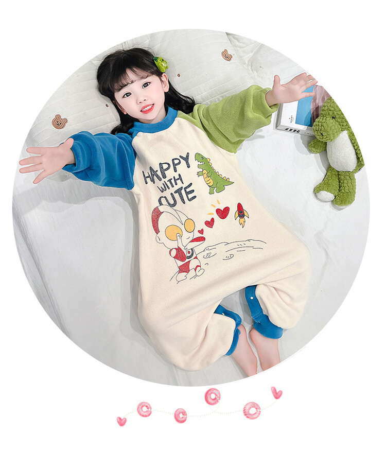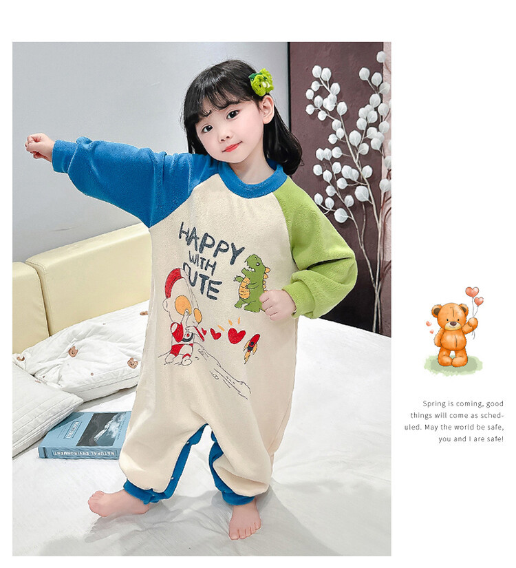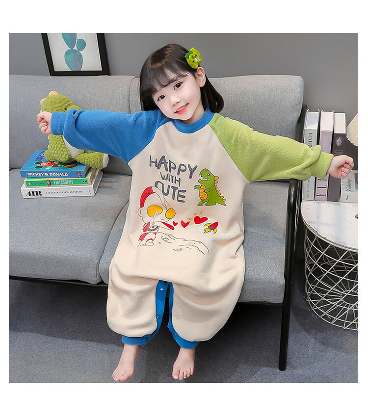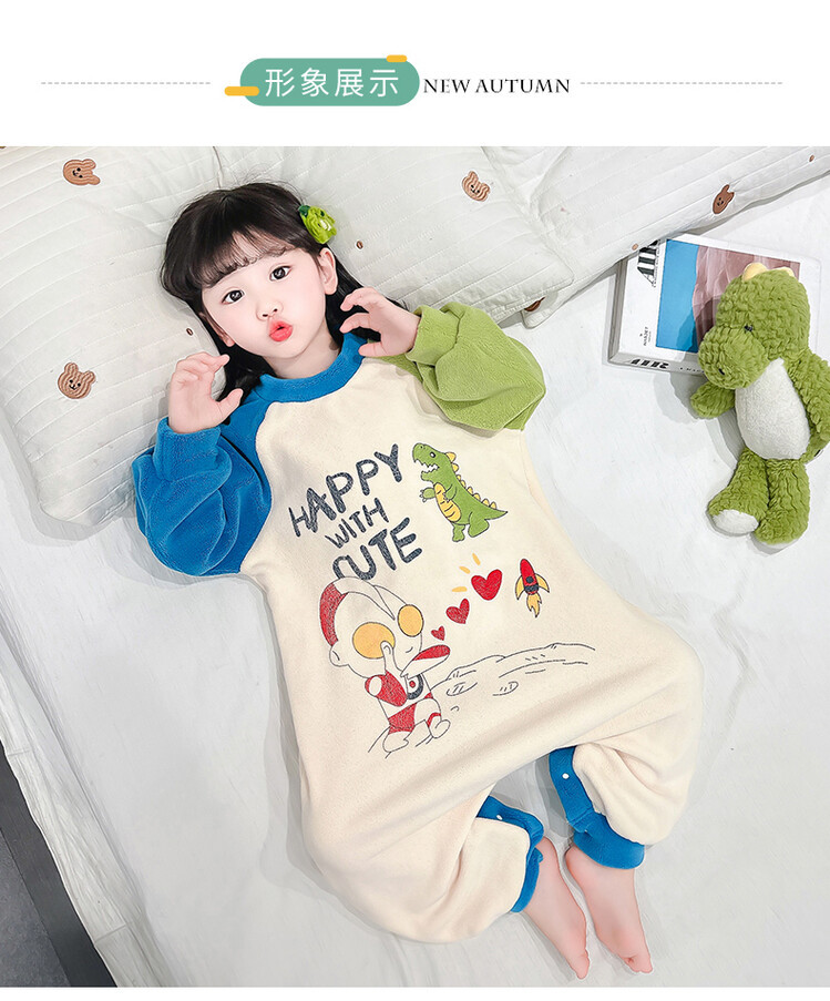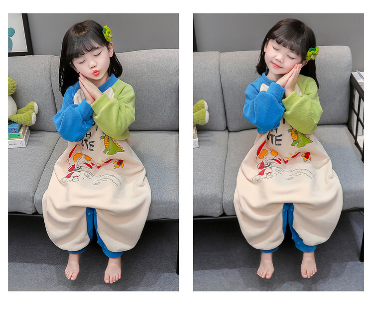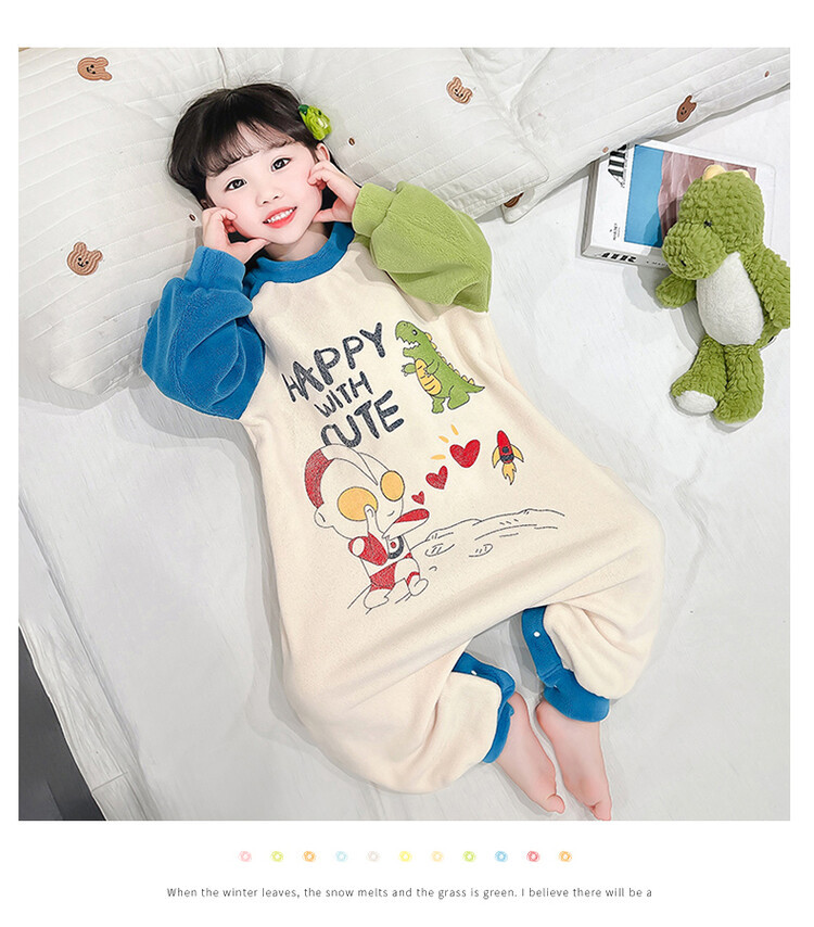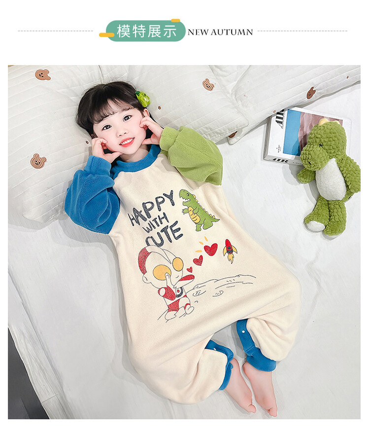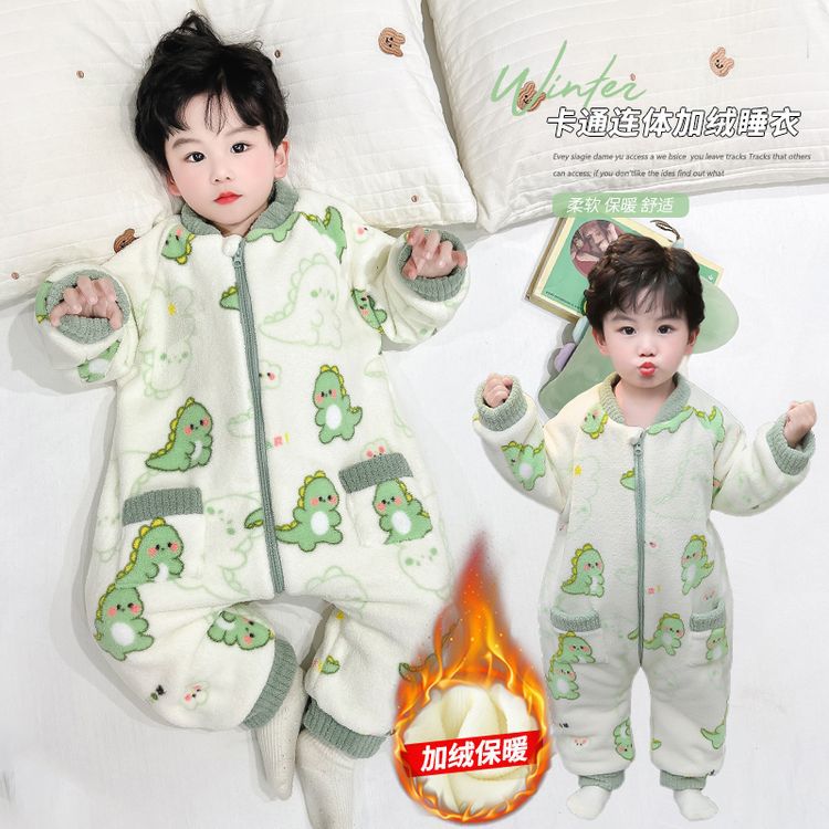 儿童连体睡衣秋冬款宝宝法兰绒加厚保暖男童女童睡袋珊瑚绒防踢被