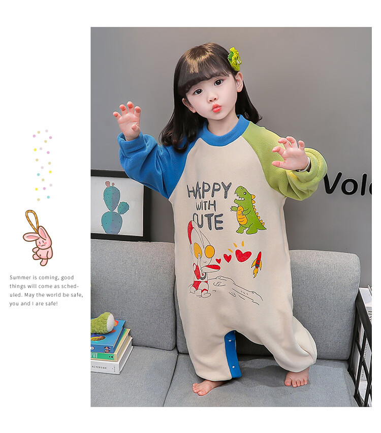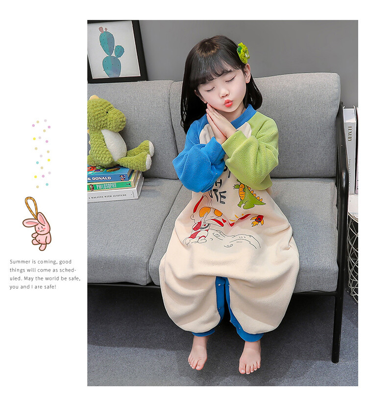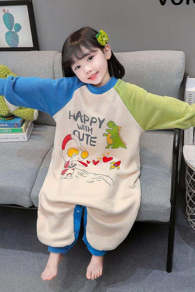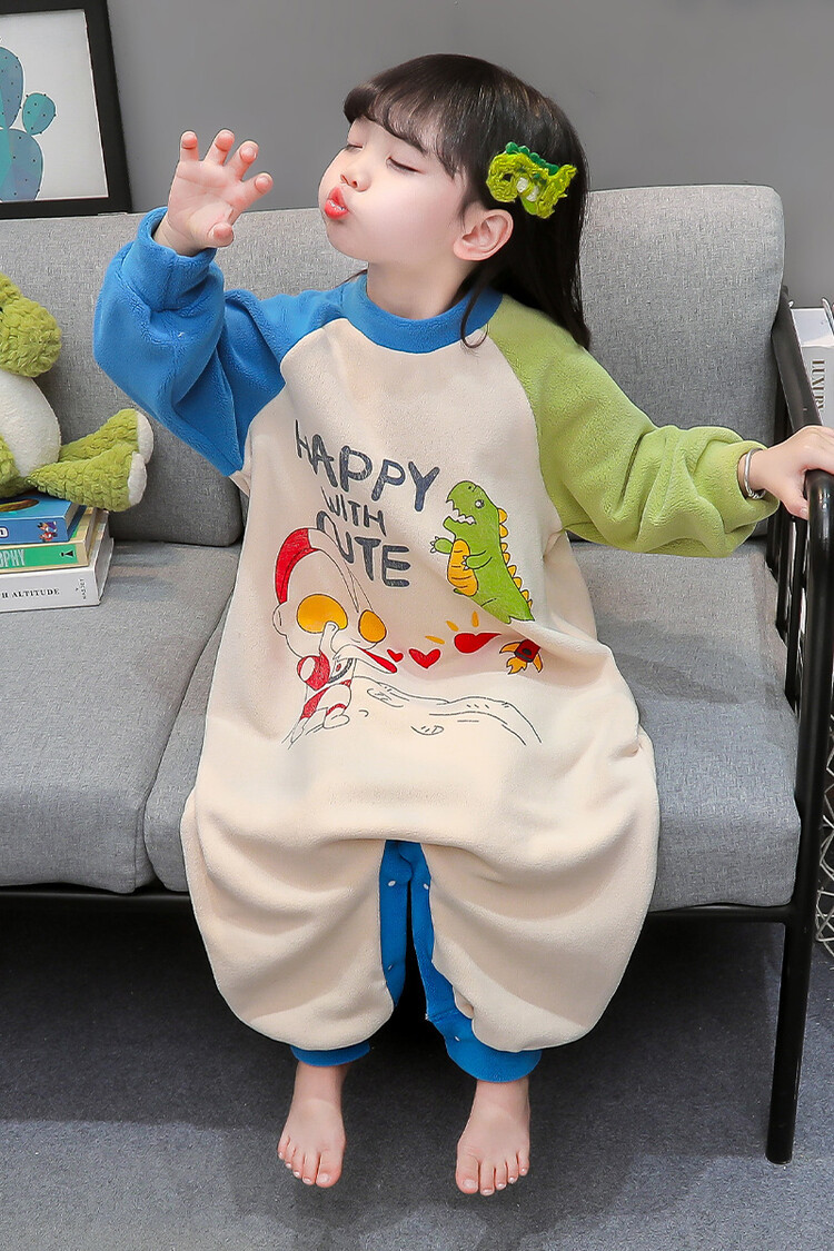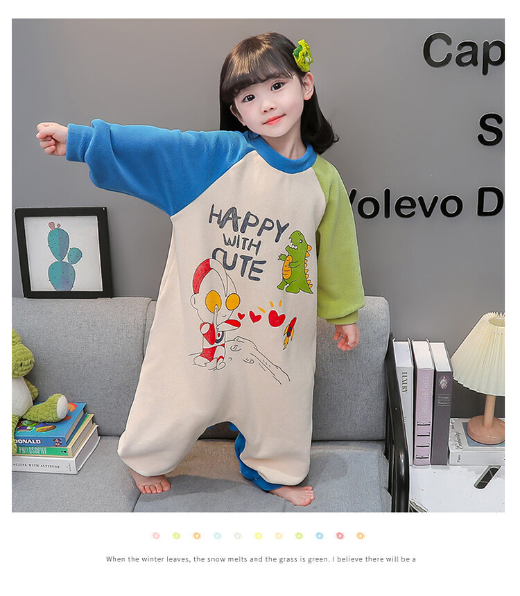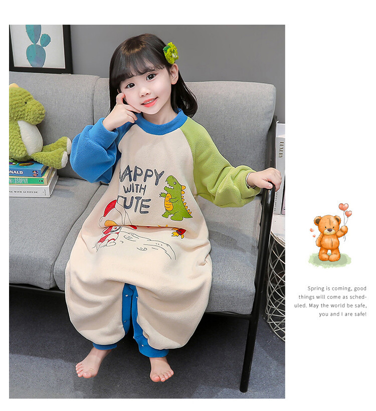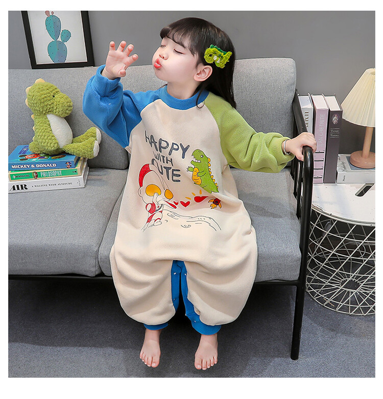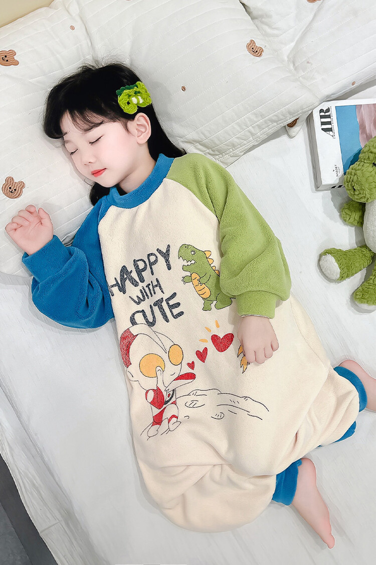 儿童连体睡衣秋冬款宝宝法兰绒加厚保暖男童女童睡袋珊瑚绒防踢被