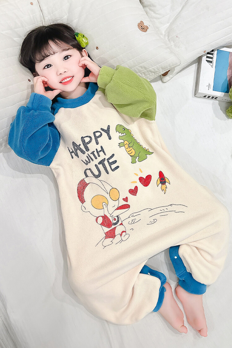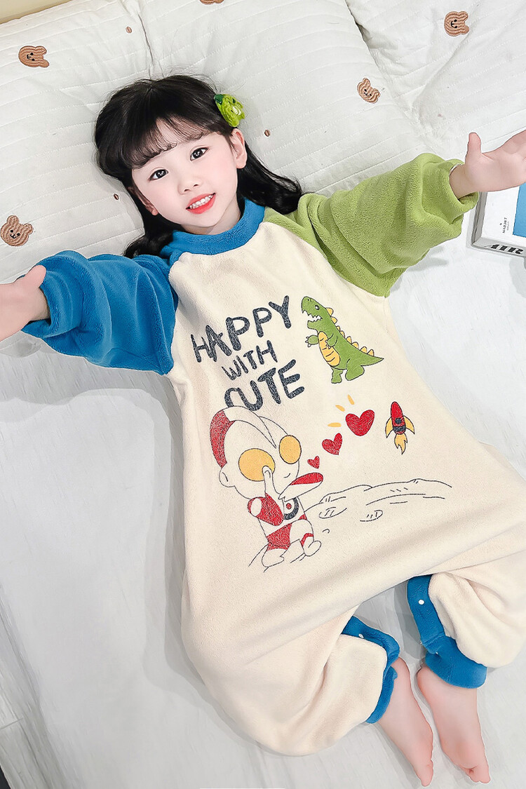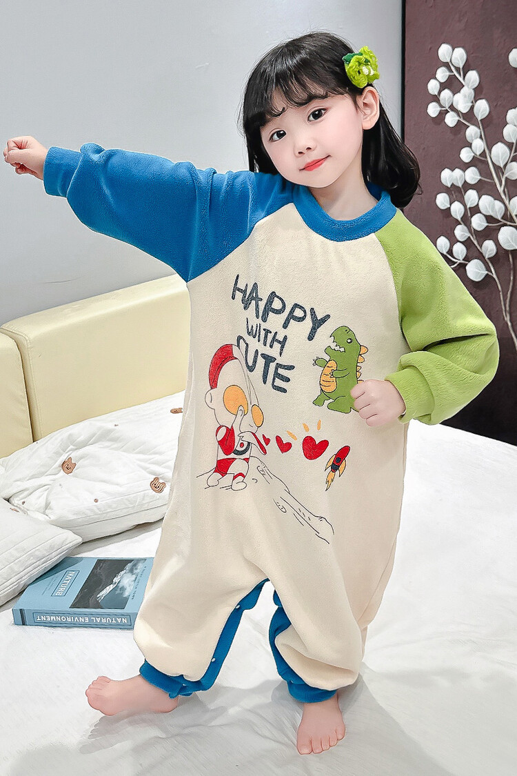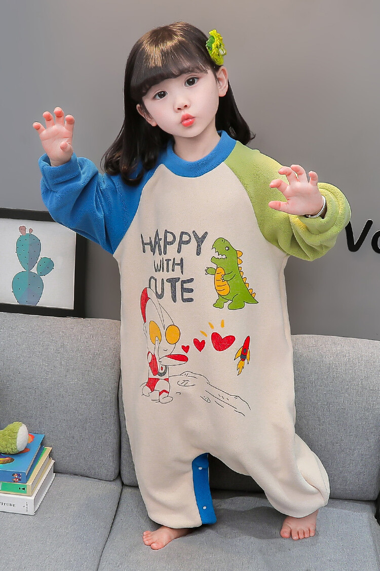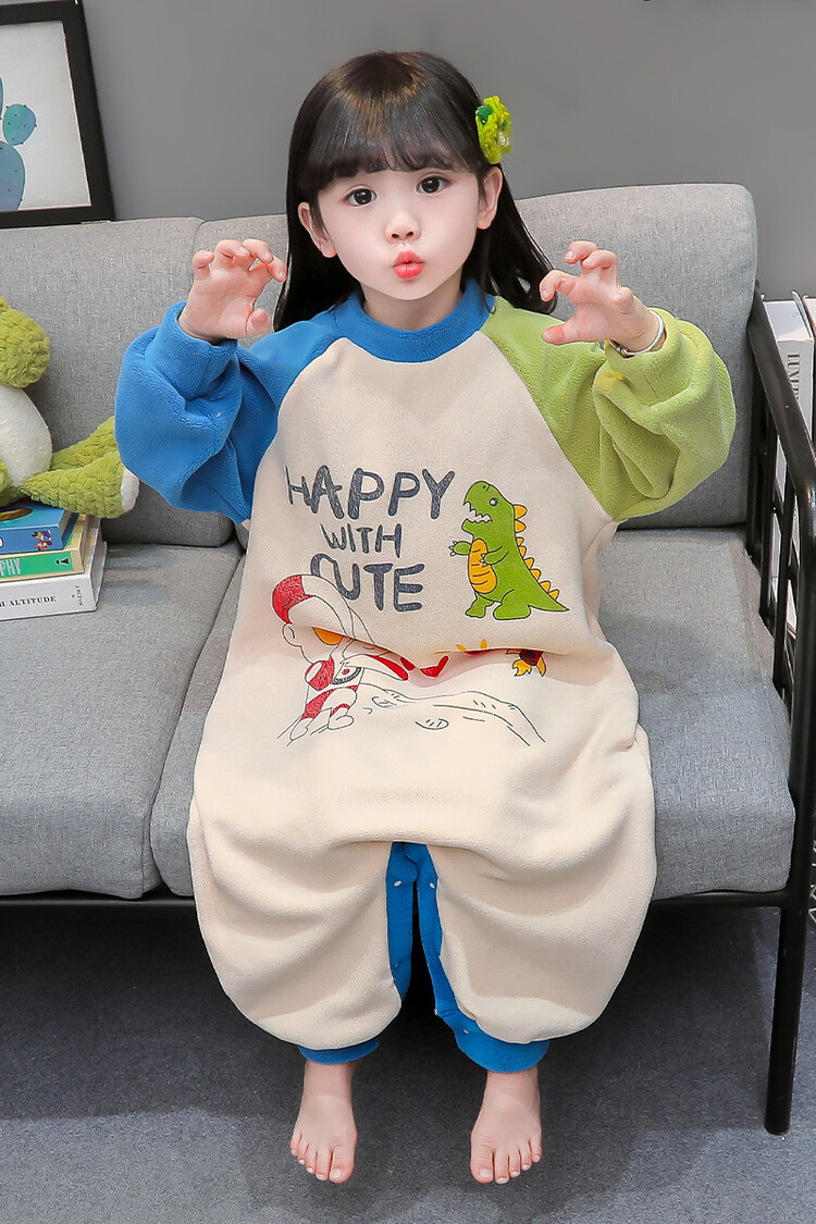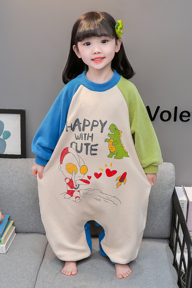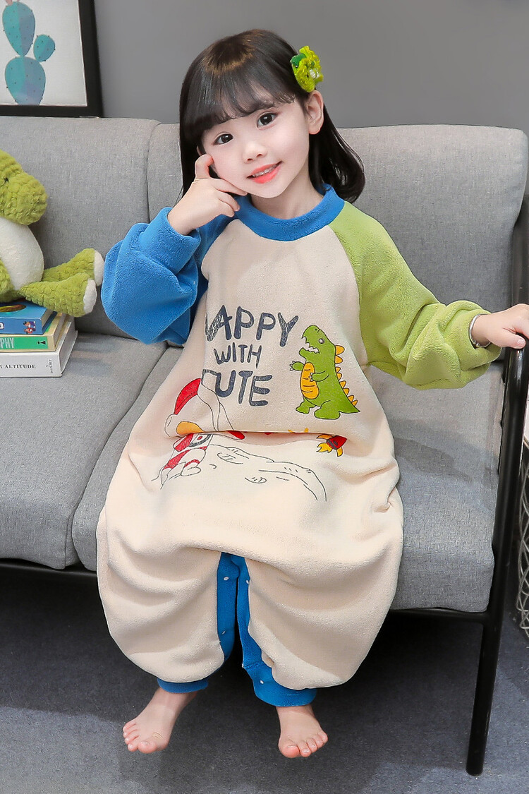儿童连体睡衣秋冬款宝宝法兰绒加厚保暖男童女童睡袋珊瑚绒防踢被