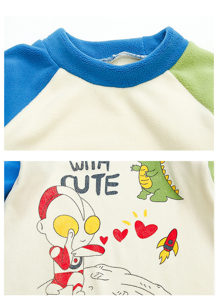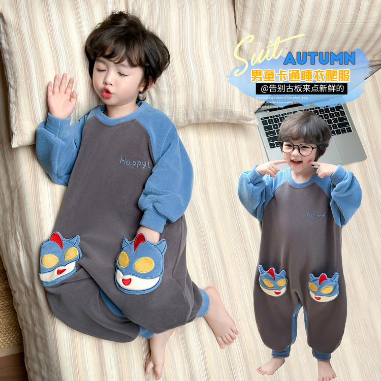 2024新型ウルトラマン子供のサンゴのベルベットのパジャマ男の子の冬に赤ちゃんのフランネルを厚くして服を登る