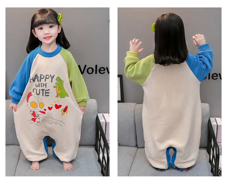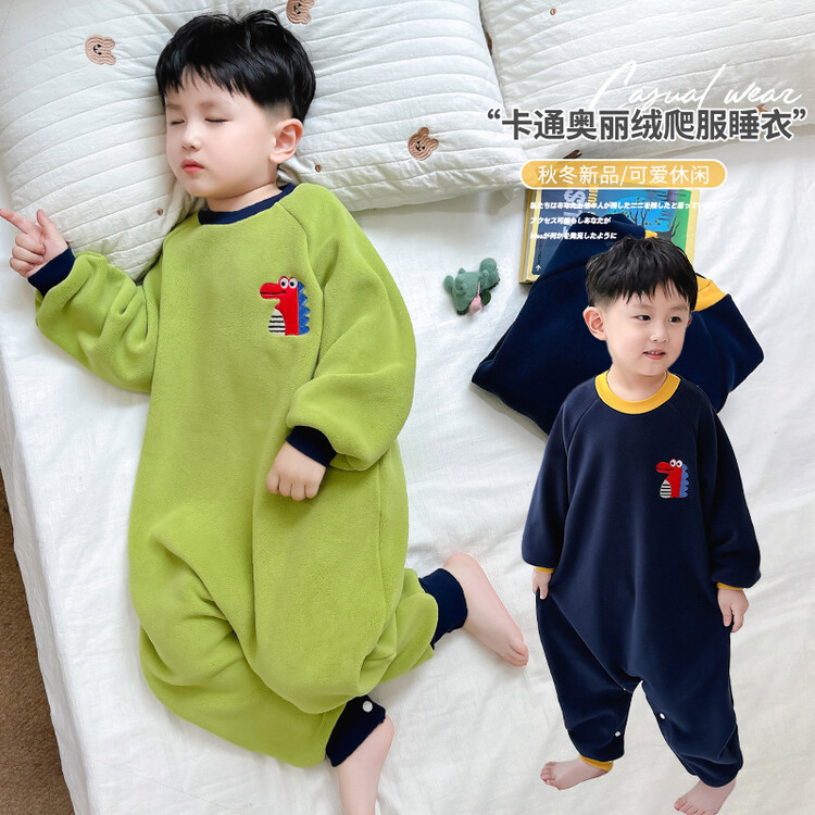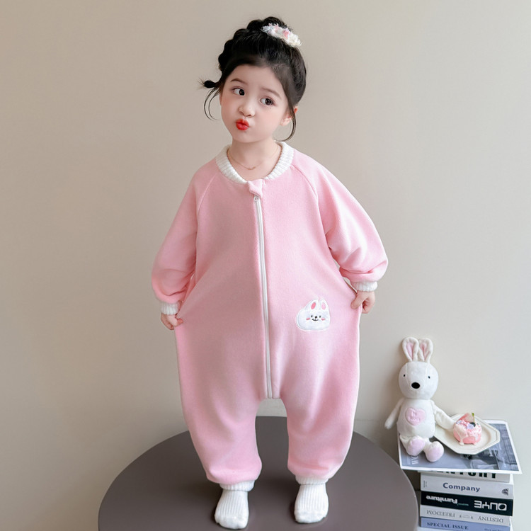 婴儿睡袋秋冬季保暖宝宝奥粒绒爬服儿童法兰绒家居服女童连体睡衣