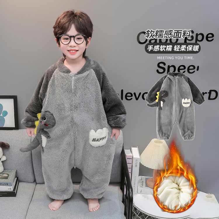 子供用パジャマ秋冬コーラルベルベット連体服ホームウェア男女宝加厚登服赤ちゃんフランネルパジャマ