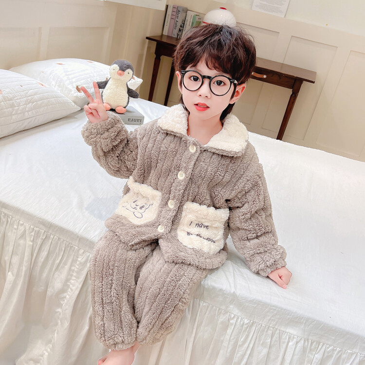 子供用パジャマ 2025秋冬新作 男の子用フランネルホームウェア 暖かいコーラルベルベット分割セット