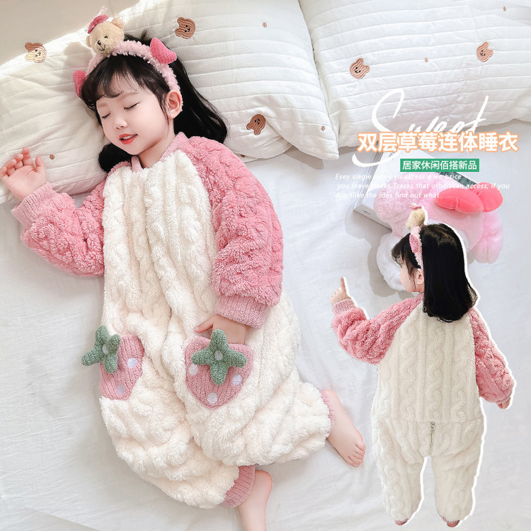 女童连体睡衣珊瑚绒宝宝秋冬婴儿睡袋儿童法兰绒防踢防着凉家居服