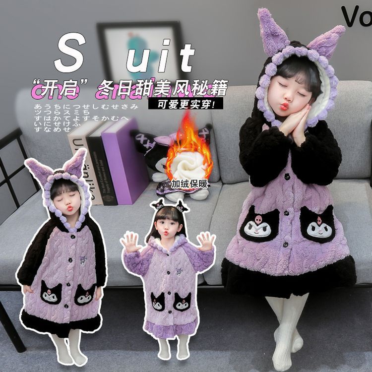 2024秋冬新作 女の子用ナイトガウン ベビーコーラルベルベット 可愛いロング丈 二重フリース 厚手パジャマ