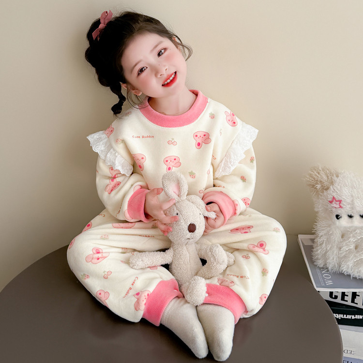 子供のパジャマの女の子のフランネルの秋冬の女の子の2024の新型の冬の厚いサンゴの綿毛の赤ちゃんの家の服