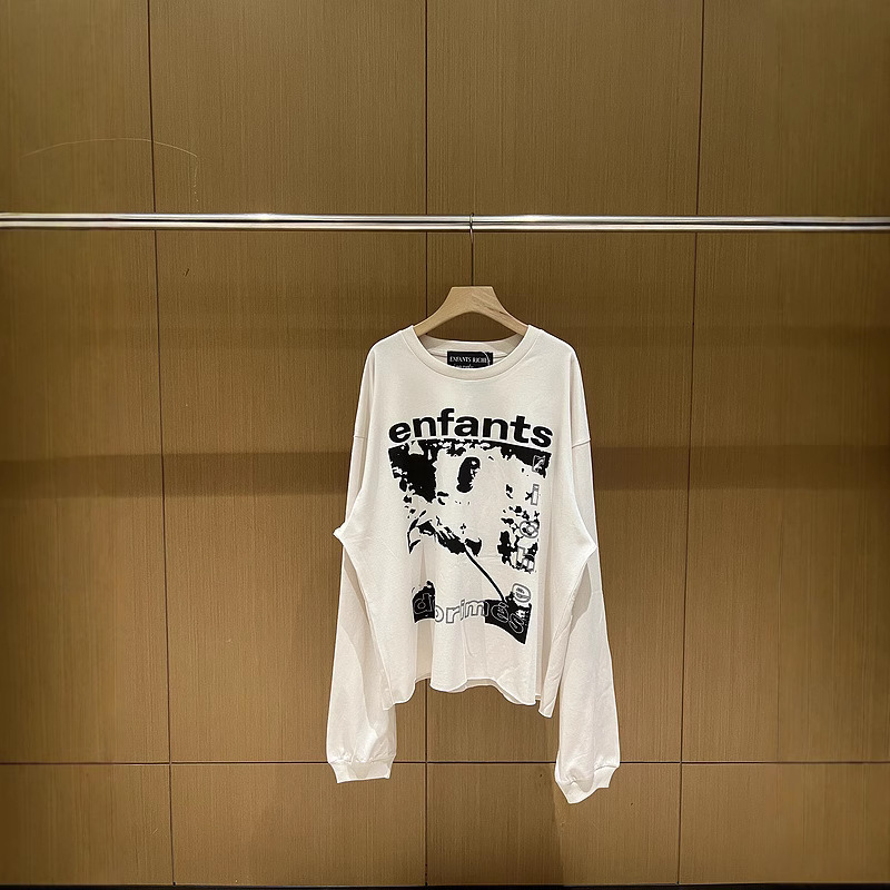 ERD 23FW忧郁な富二代牧师人像落书きプリント丸襟长袖tシャツカップルパーカー男女