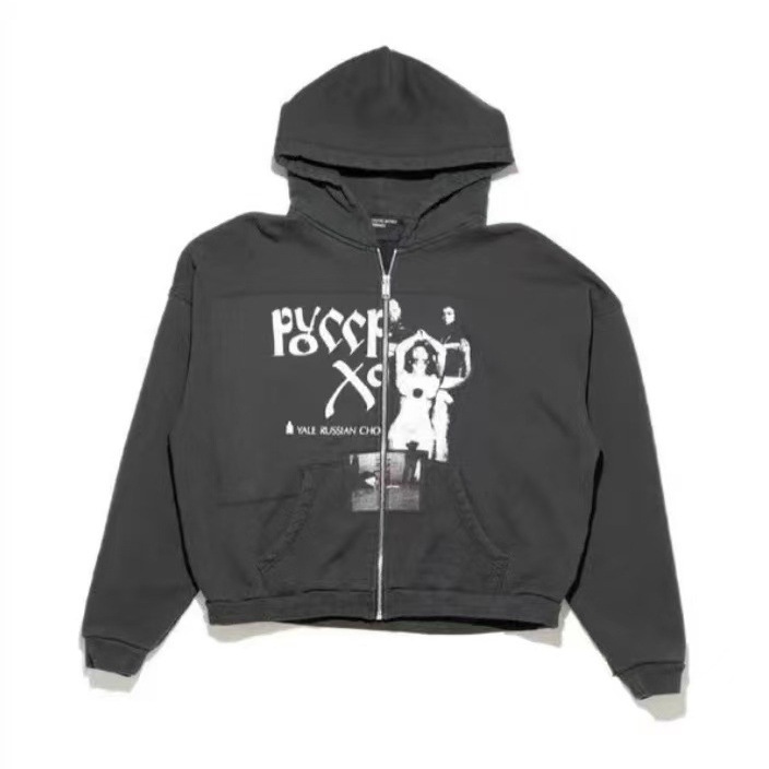ERD忧郁的富二代25ss耶鲁俄罗斯合唱团洗水做旧拉链卫衣帽衫外套
