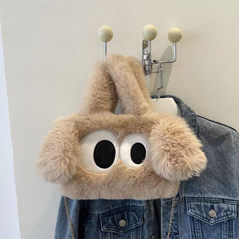 2025 ホットスタイルの女性のポータブルショルダートート小さな正方形バッグ大きな目漫画模造ウサギぬいぐるみファッションかわいいクロスボディバッグ