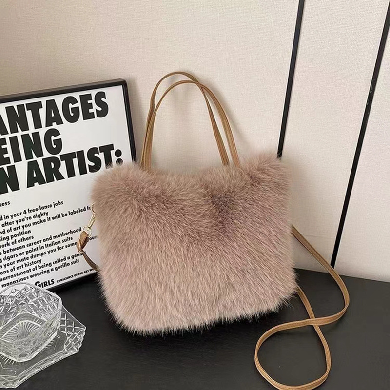 カスタマイズされた豪華な模造キツネの毛皮のハンドバッグシンプルな豪華なバッグ 2024 模造キツネの毛皮のトートバッグハイエンドの小さなバッグ