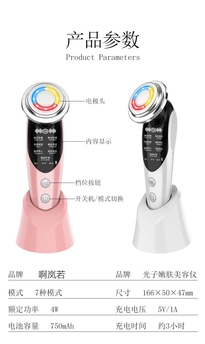 クロスボーダー爆発赤ブルーライト導入温熱導入器7モードEMS超音波顔プルアップ美容器