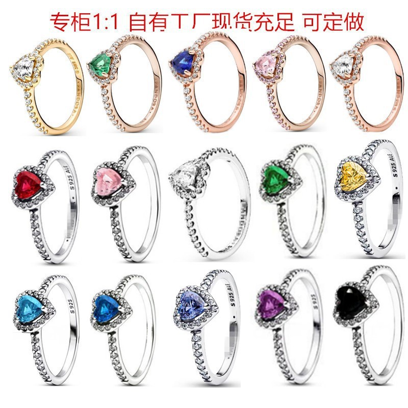 潘家多拉白铜镀银崇高的心系列红色粉色白色爱心戒指