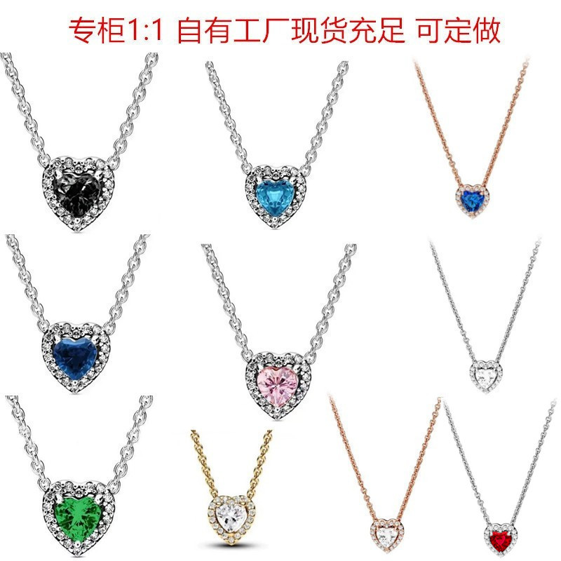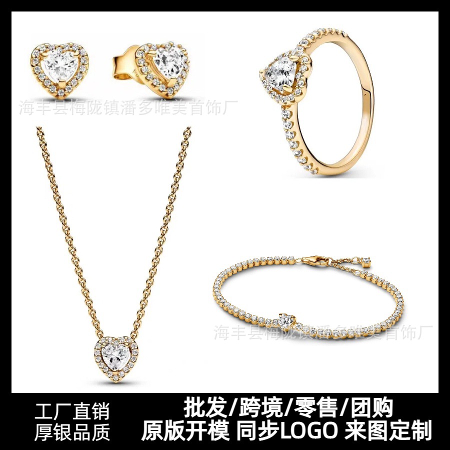 パンドラメッキS925銀色のダイヤモンド愛ネックレスハート型ピアスクロスボーダー専用指輪調節セット女性