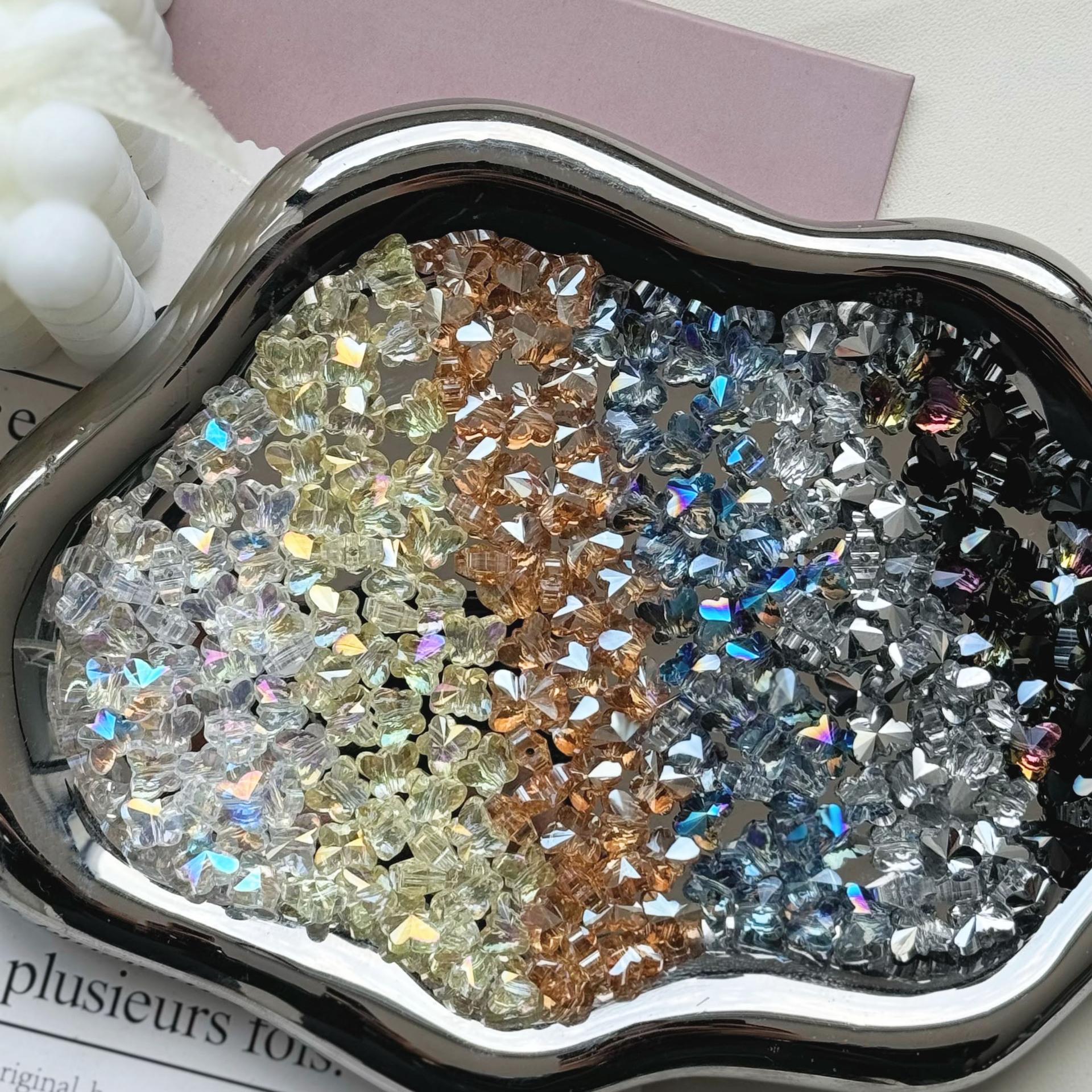 6*8mm蝶水晶ガラスビーズハイライト異性珠携帯チェーンキーホルダーブレスレットdiy部品ビーズビーズ