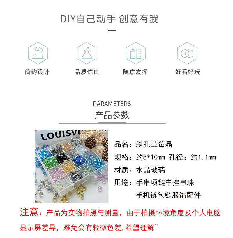 8*10mm斜穴いちご結晶高透ハイライト携帯電話チェーンdiy材料手作りビーズ散珠服装部品