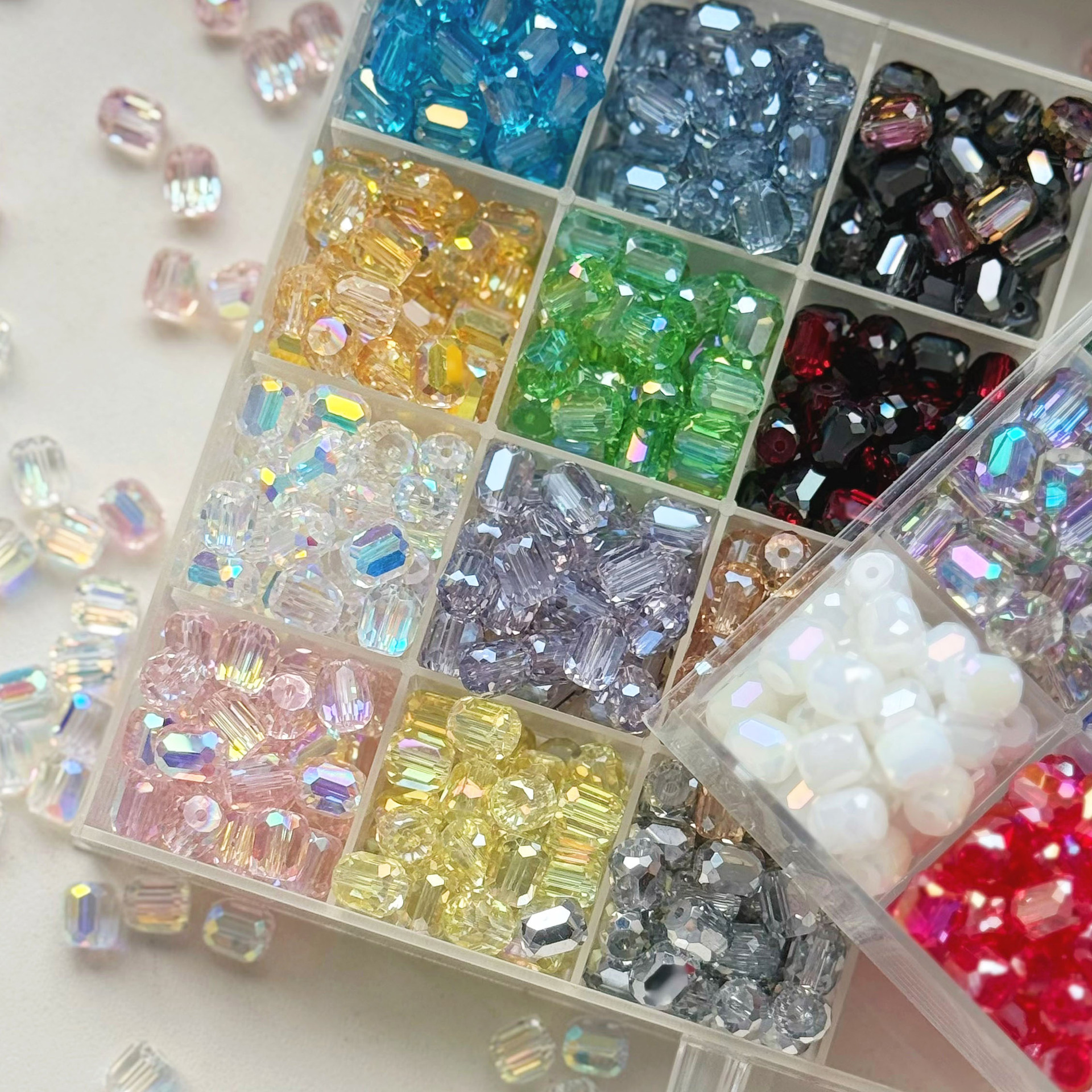 10mm切面長円柱水晶ガラスビーズ手作りDIYアクセサリー部品超透フラッシュ携帯電話チェーン手串材料