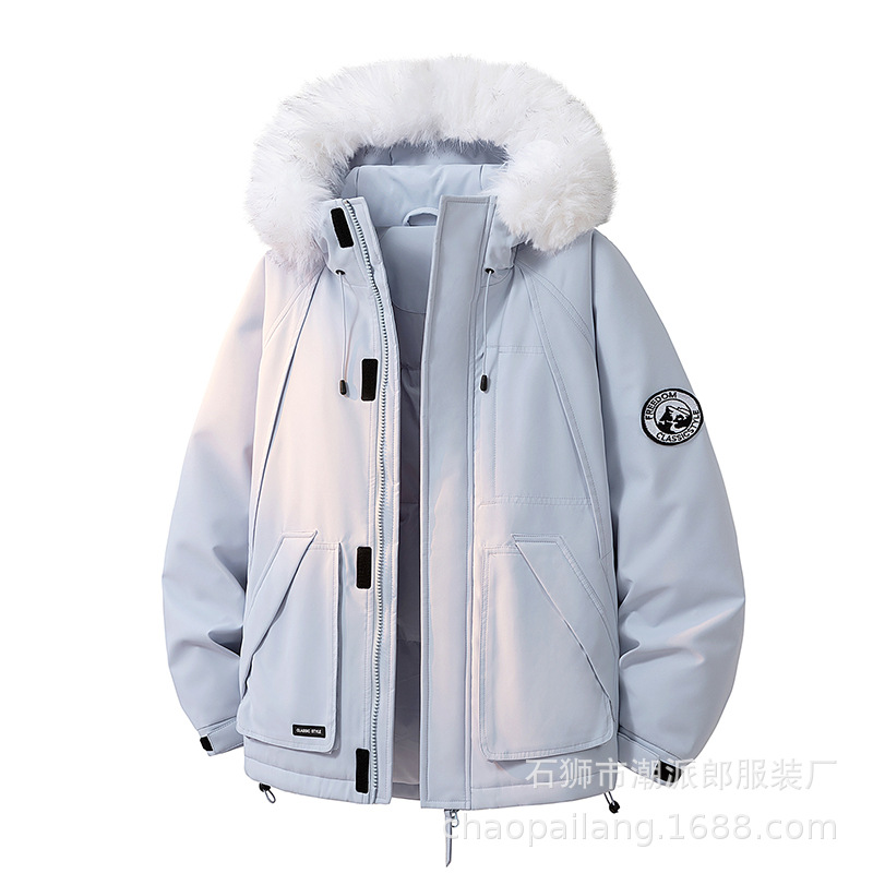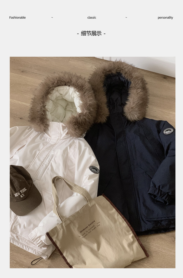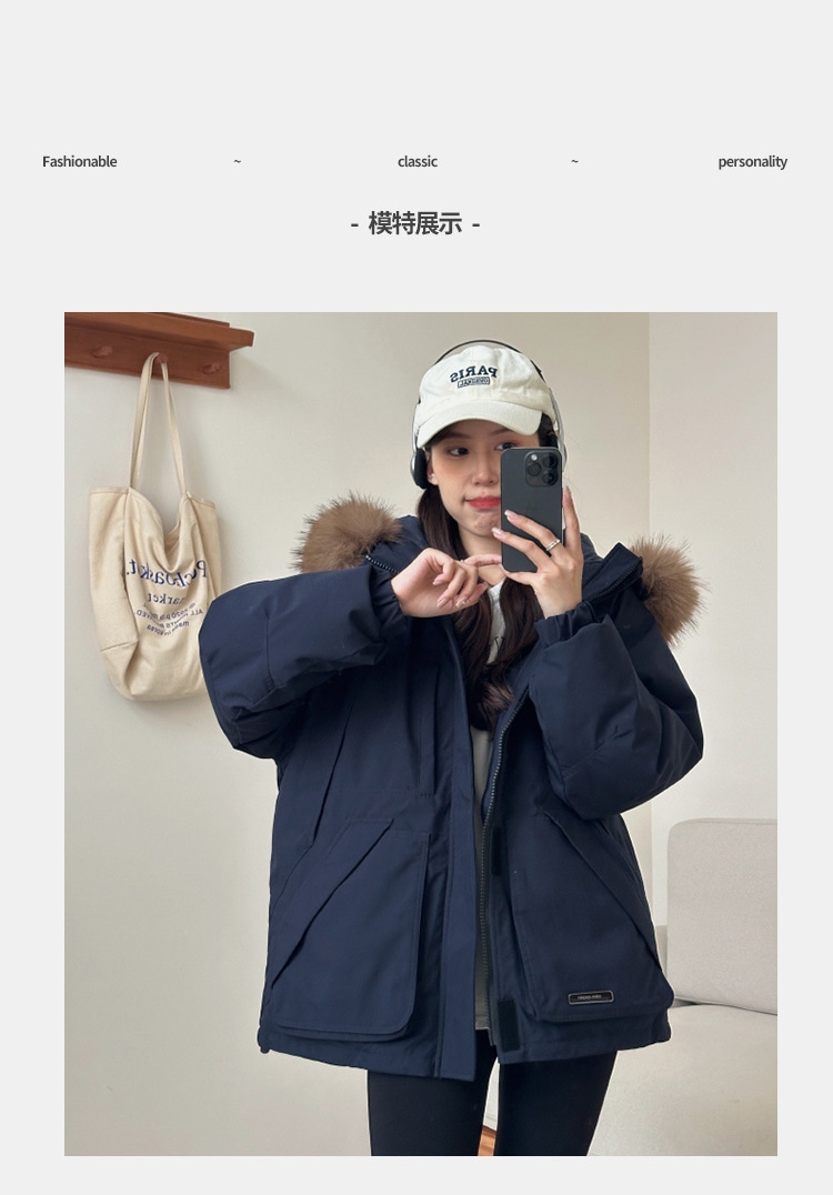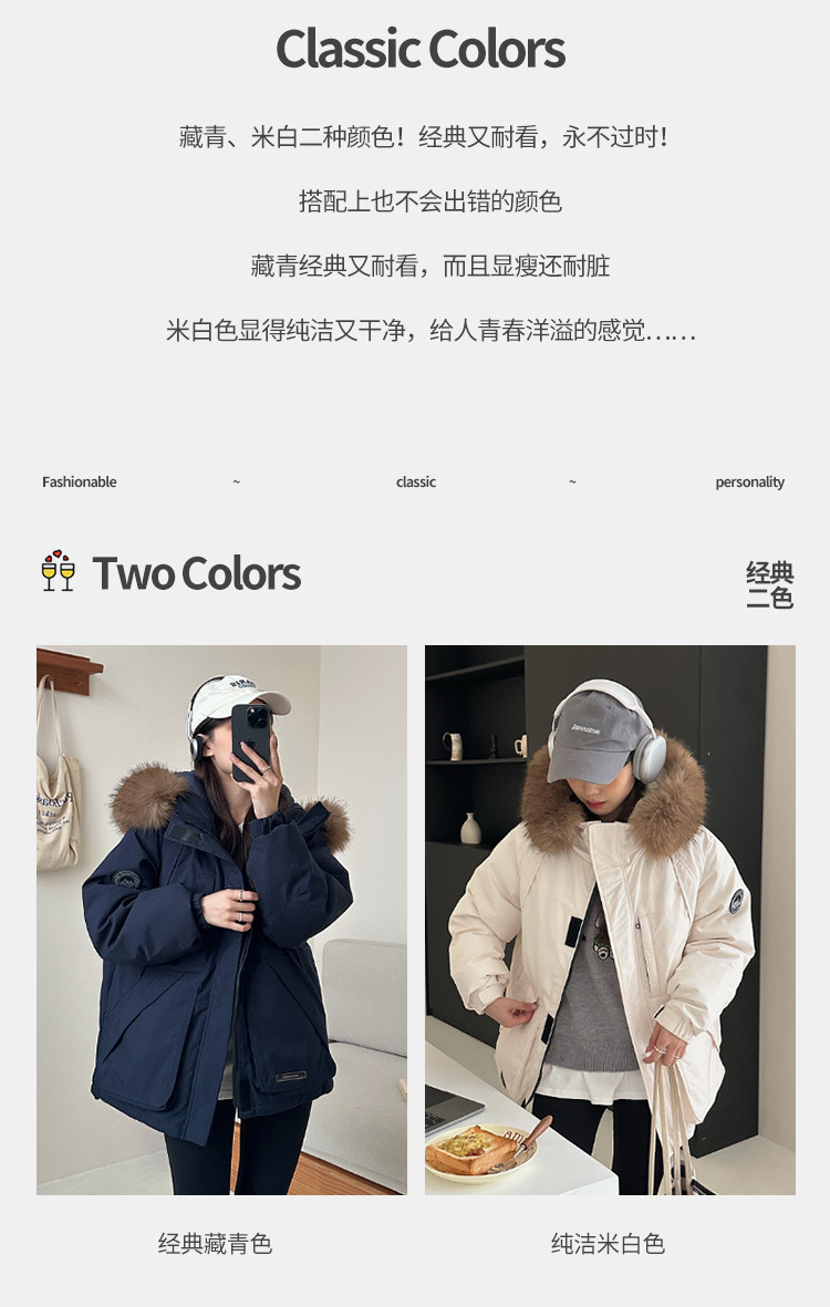伊莫网红白鴨ダウンカップル風ワークウェアダウンジャケット女性用2025新作ファー襟付きショートパーカー風コート女性用