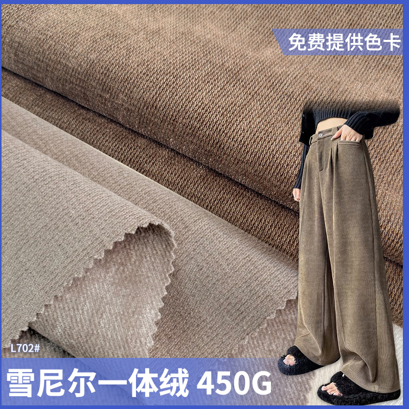 雪尼尔一体绒450g布料 赛络纺7支雪尼尔竖条绒底秋冬加绒裤子布料