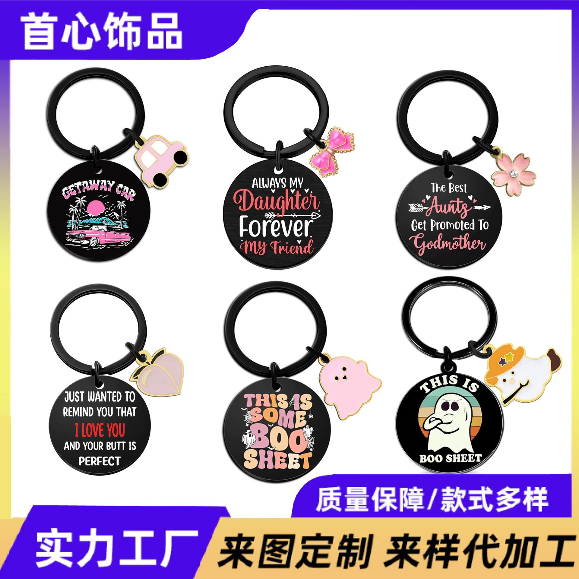 クロスボーダー ステンレス製アルファベットキーホルダー 欧米風バッグチャームアクセサリー クリエイティブチタン鋼製プチギフトキーリング 卸売