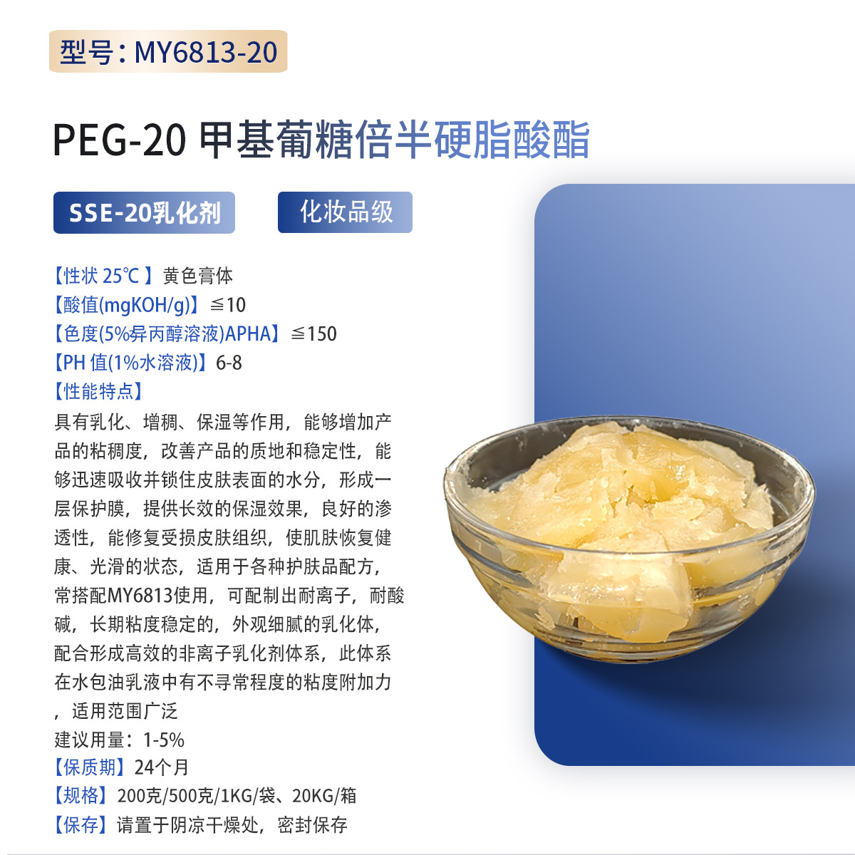ペグ-20メチルグルコサミン倍セミステアリン酸エステルSSE-20乳化剤化粧品級水包油乳化剤