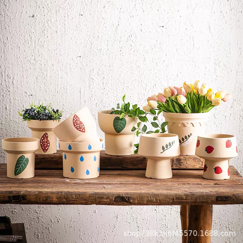 创意陶盆手绘北欧个性绿植陶盆漂亮网红花店陶瓷盆ins风多肉花盆