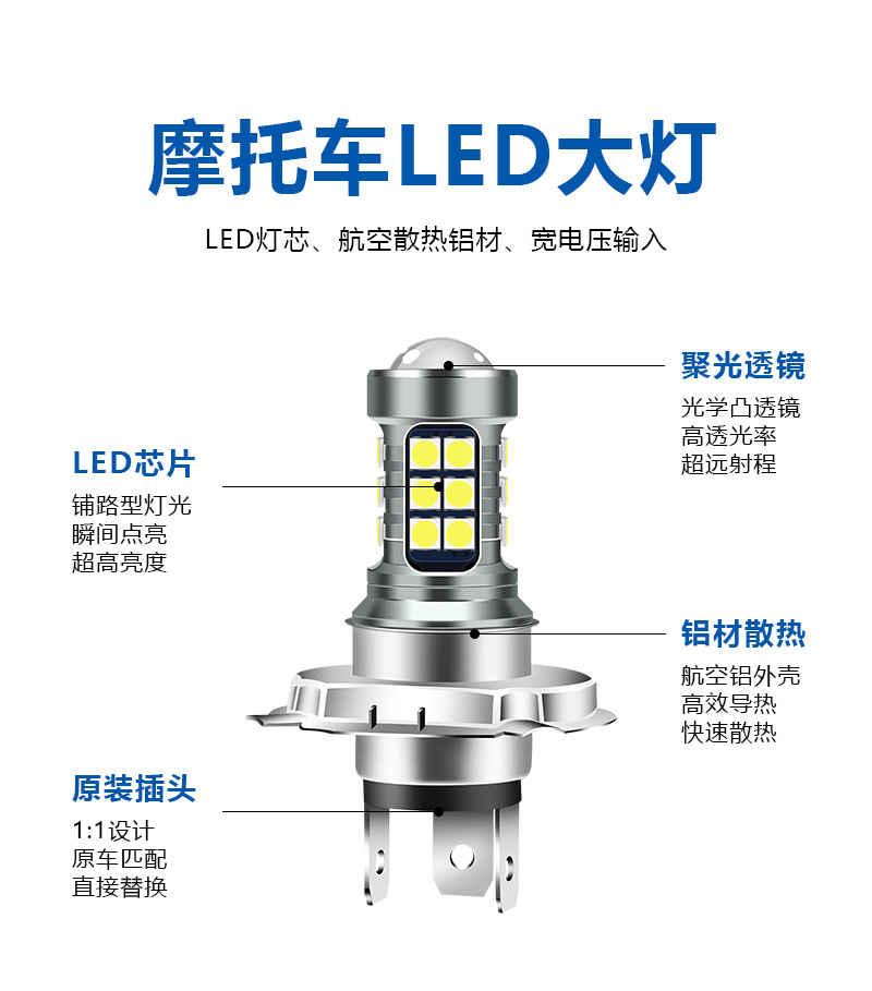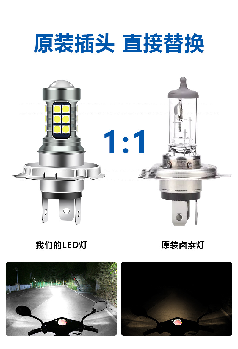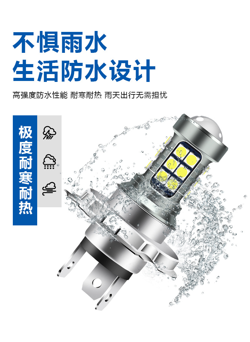 天使眼跨境专供新品led摩托大灯H4 BA20D P15D白黄双色超高亮前大