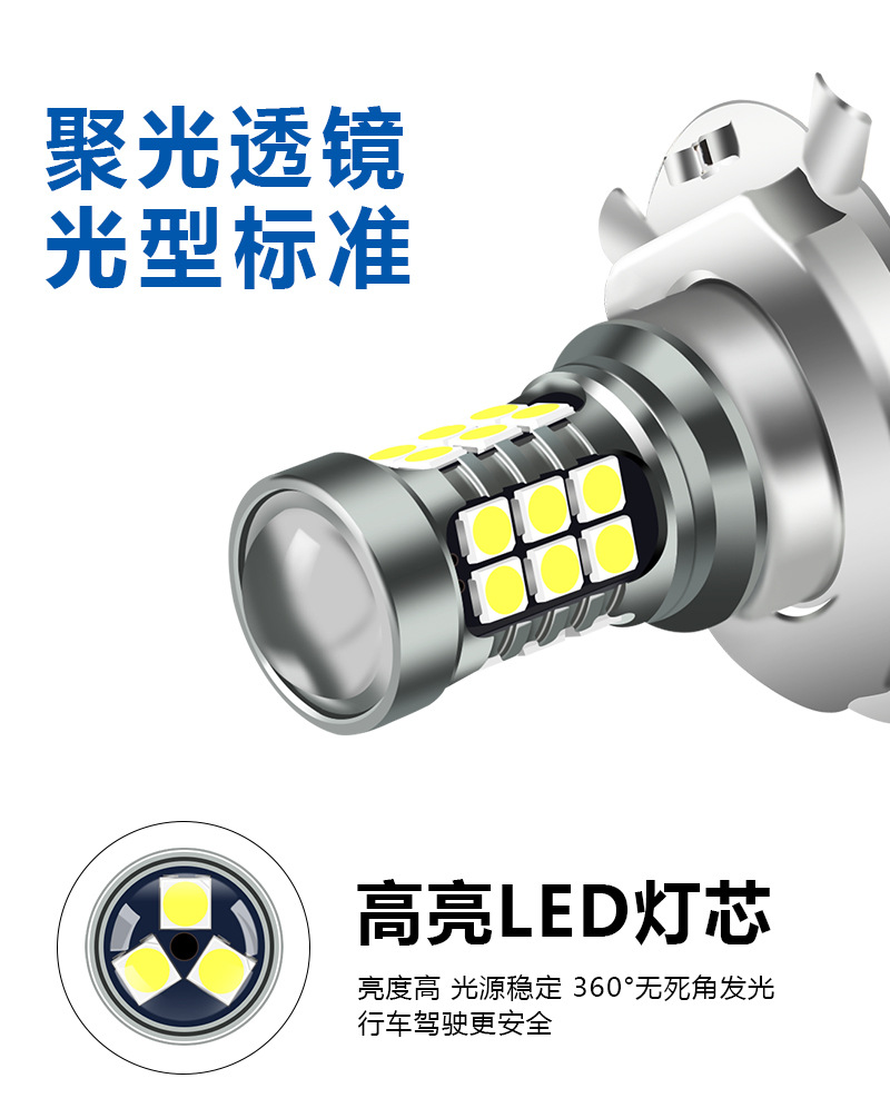 跨境专供摩托led大灯双透镜H4 H6 BA20D远近一体白黄双色24灯
