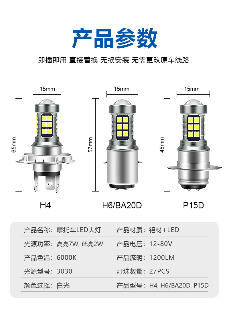 TGZ越境販売人気商品 バイク用LEDヘッドライト H4H6P15D 三爪/単爪 303027SMD 車用ライト 12V オートバイ