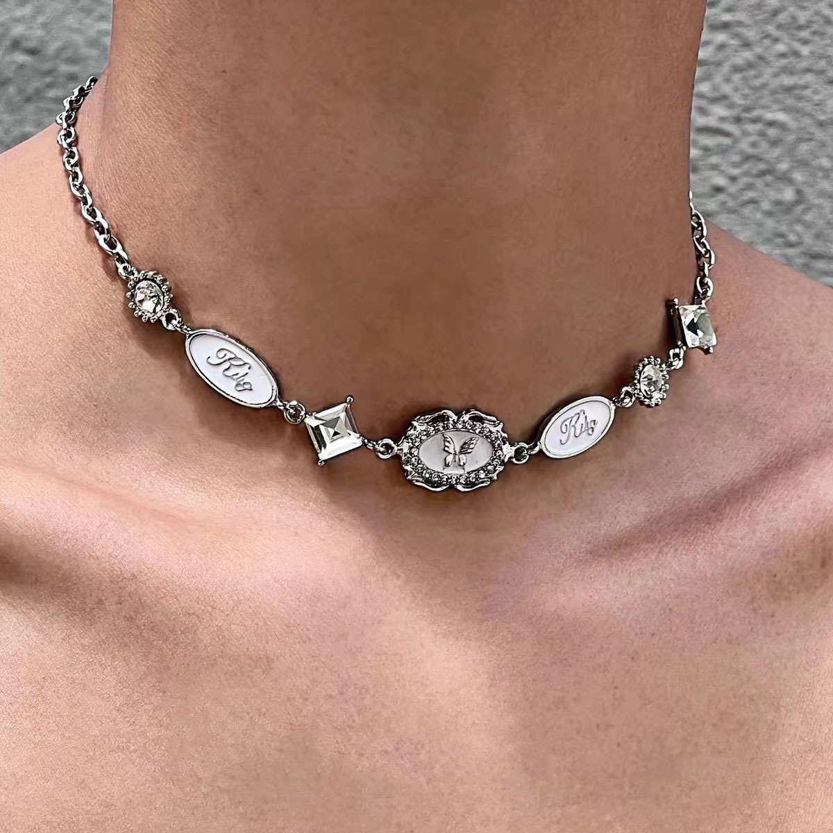 Y 2k白ドリルパンクチョーカーのネックレスのギャルの甘いクールな亜文化のバロックの復古の大衆の高級な設計の潮