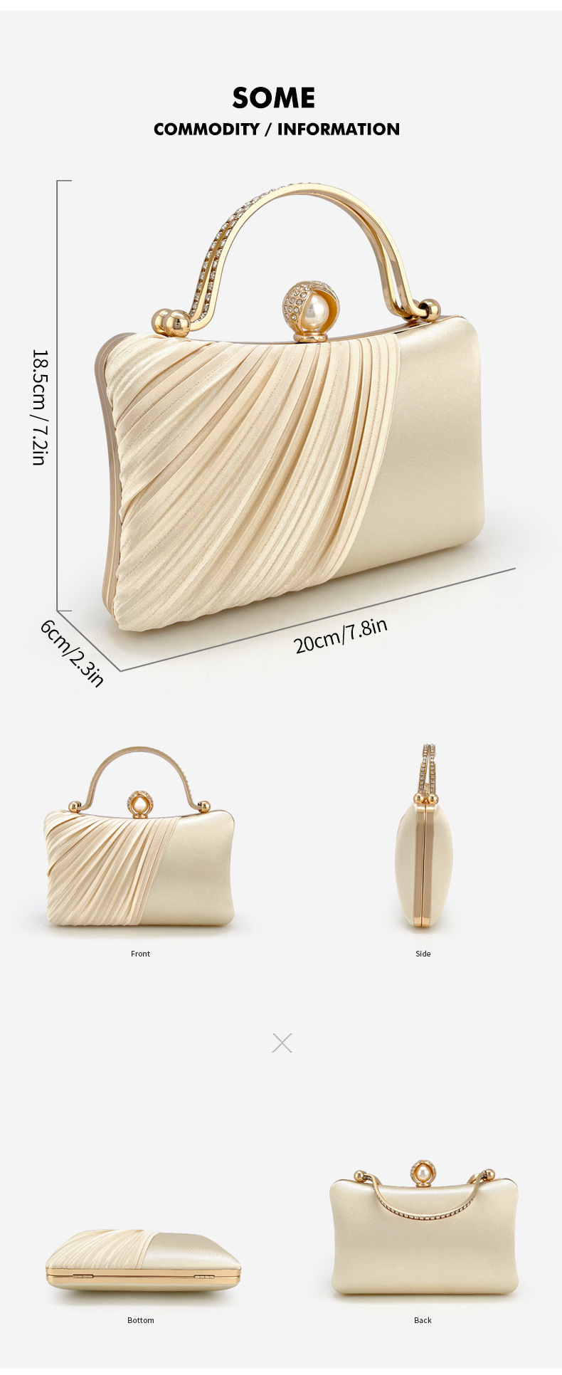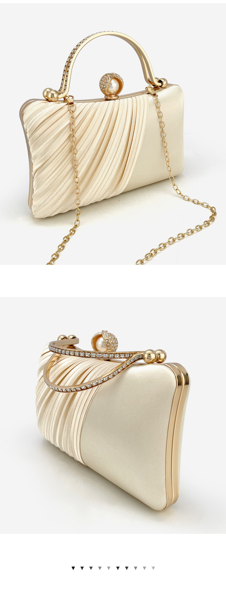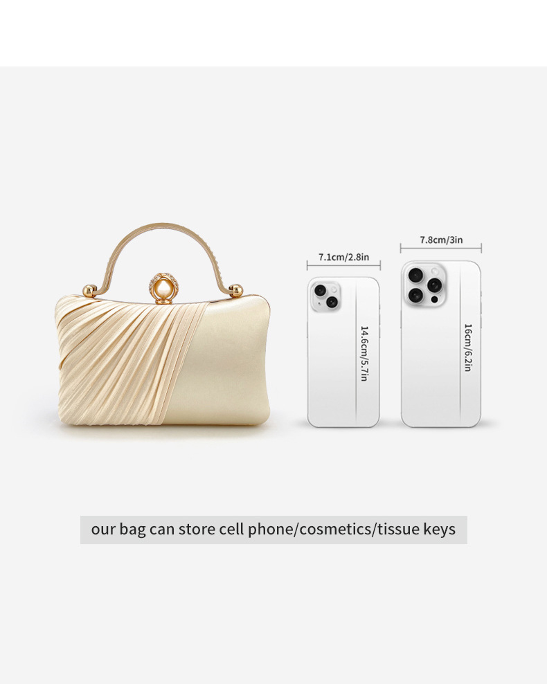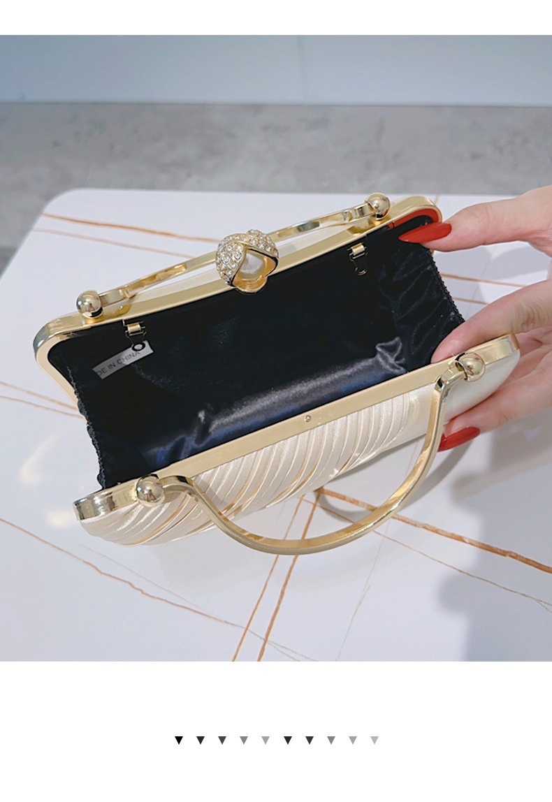 新款金色褶皱晚宴包名媛派对链条包礼服旗袍手提包贵气斜挎单肩包