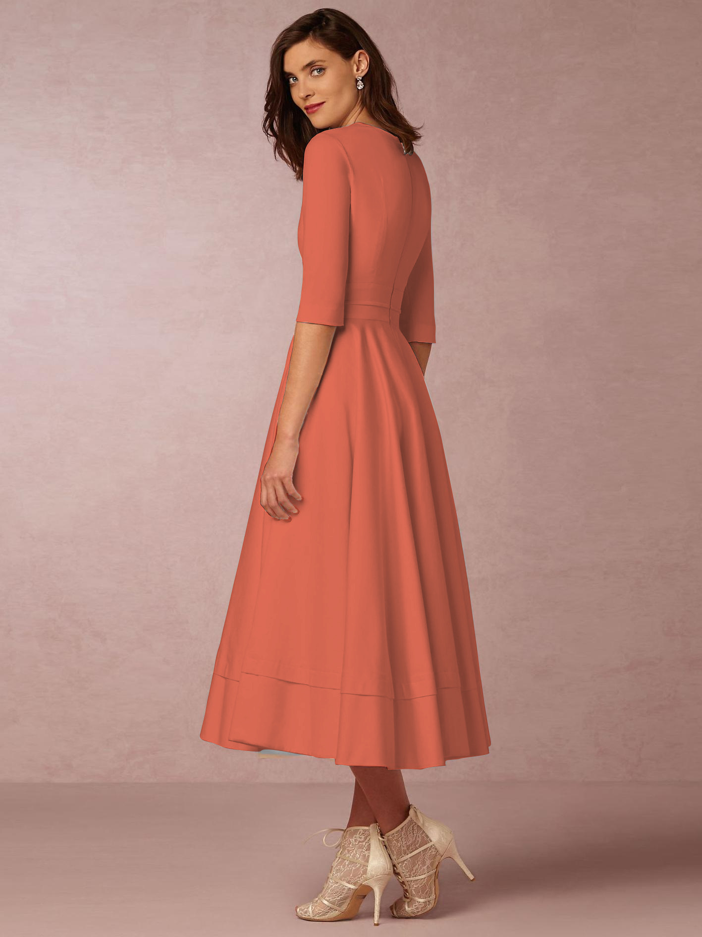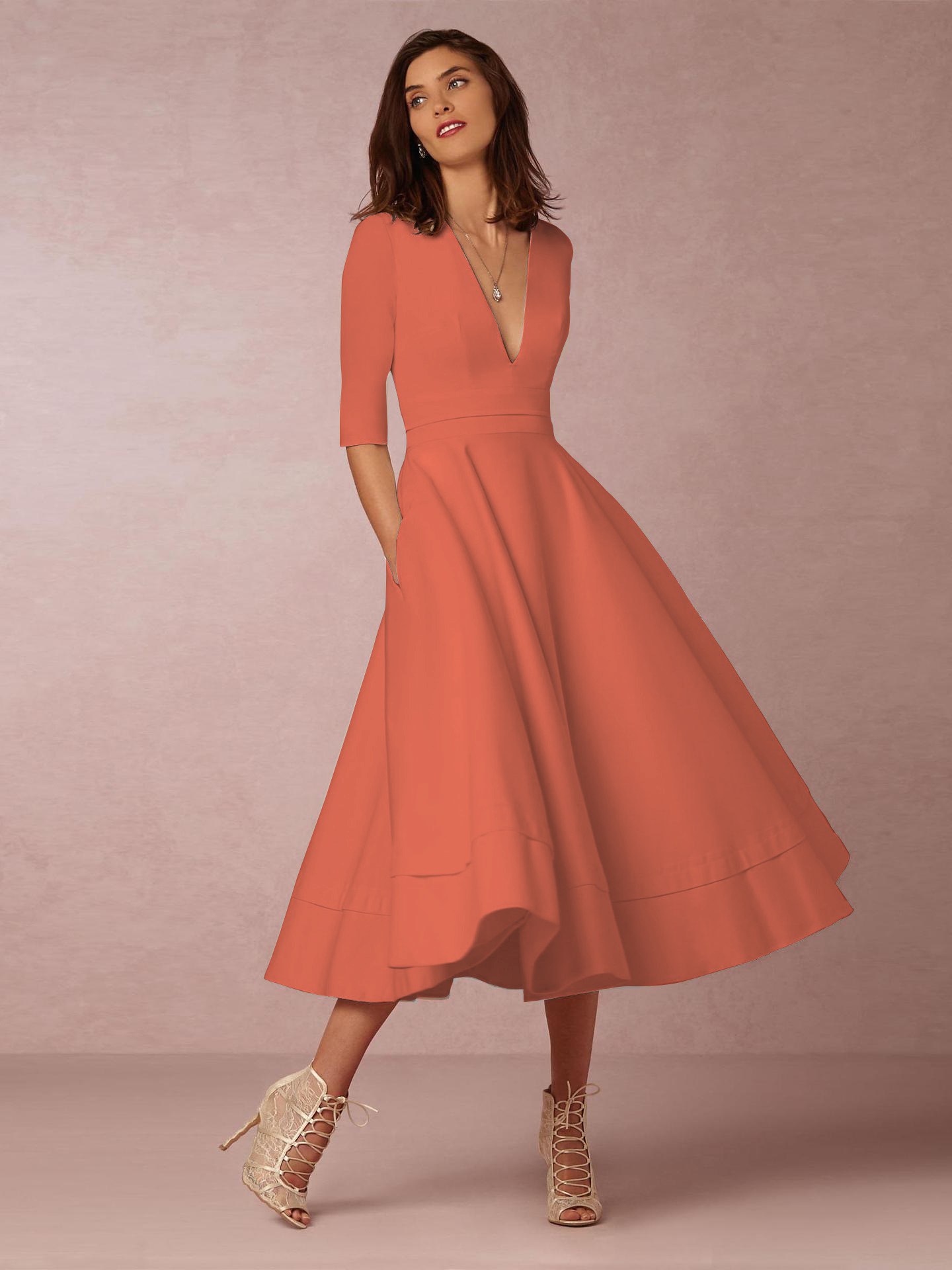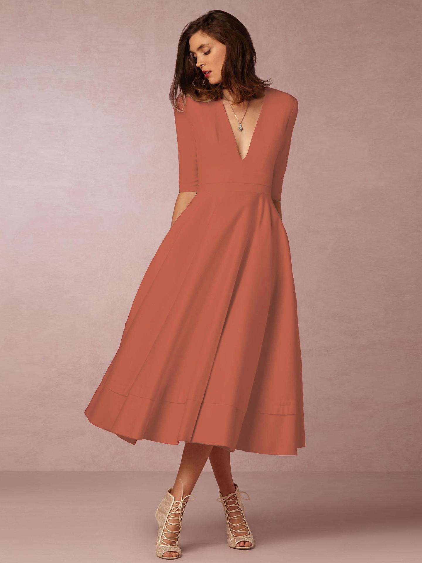 2024欧米の対外貿易の新型ebayアマゾンは赤いセクシーな深いv中袖のワンピースの中の長さを熱売します。