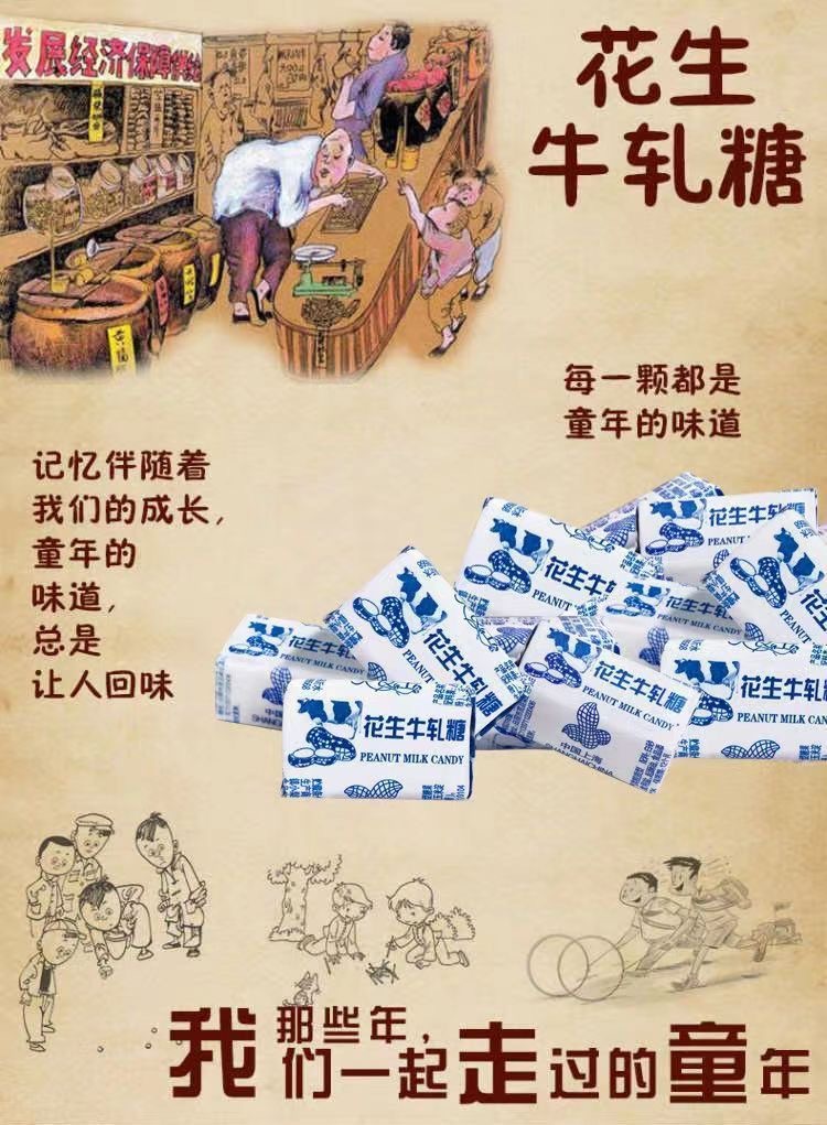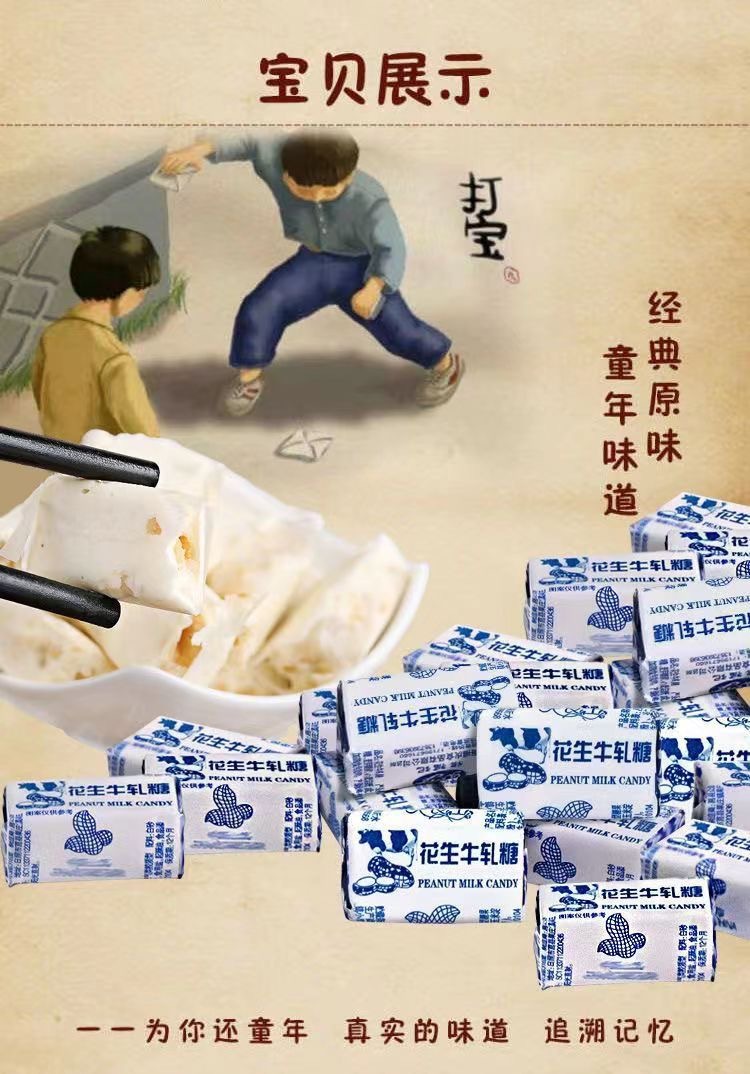 ピーナッツ牛圧延糖本格的な古い喜糖キャラメルノスタルジックな80後のキャンディーの年間間食袋に古典的な食品が入っている