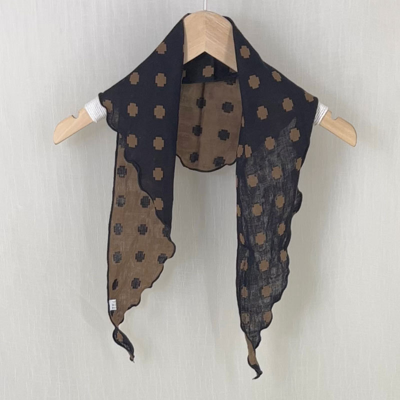 韓系春夏の薄い曲の歯の波点のシルクタオルの女性の雰囲気感の三角のスカーフの流行の装飾のスカーフの多機能