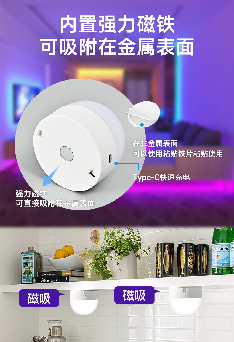 亮灯按压 led磁吸灯 圆形 遥控磁吸灯 遥控小灯 遥控壁灯户外 遥控中心灯 造型磁吸感應燈 跨境 感应灯 磁性夜眠灯 柜下 led 无线灯