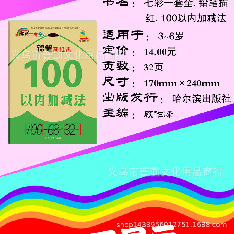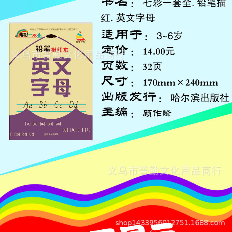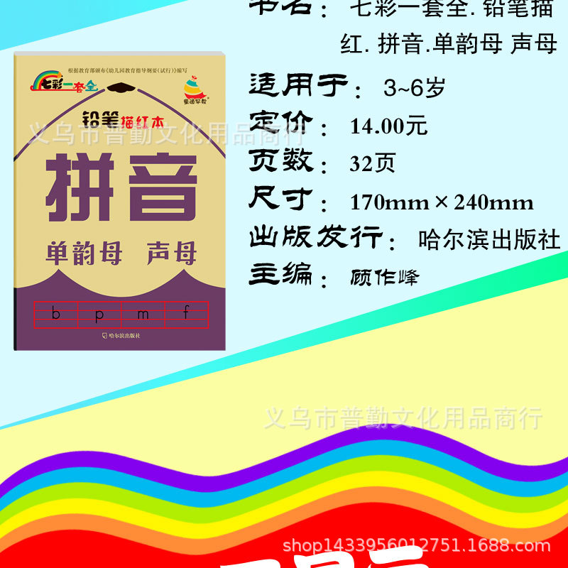 产品名称:七彩一套全铅笔描红数字拼音汉字幼儿园学前班幼小衔接彩色版