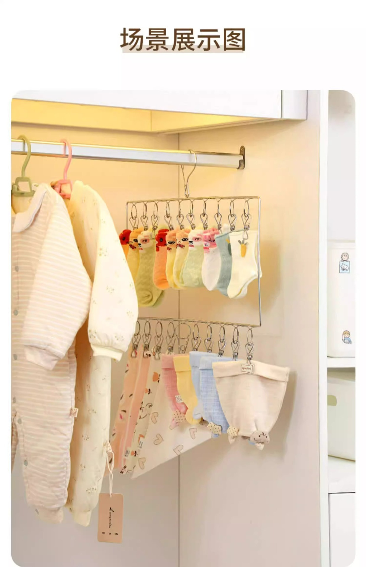 ステンレス鋼マルチヘッド靴下ラック多機能収納衣類靴下クリップ正方形多層靴下クリップ下着肥厚良いアーティファクト