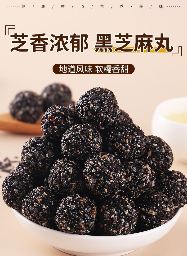 代発黒ゴマ丸は単独で500gの手作りの純粋なゴマボールの間食を包んで九蒸して蜂蜜の黒ゴマ丸を干します。