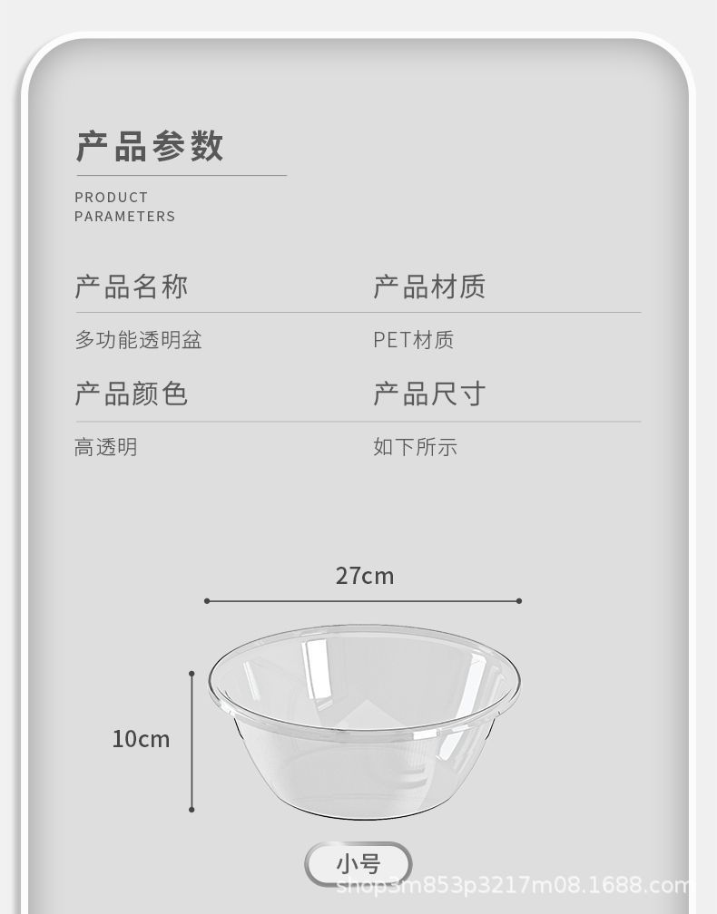 透明プラスチック洗面器学生寮厚手PET洗面器トイレ家庭用転倒防止洗濯盆果物