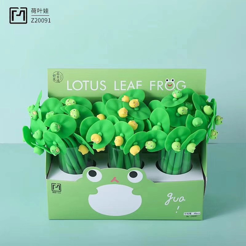 品目20091シリコンハス葉カエル中性筆学生かわいいアニメ昆虫動物ハスの花が筆を振っている